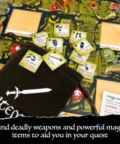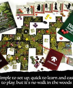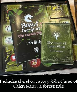 Bag of Dungeon 2: The Cursed Forest es un juego de aventuras de fantasía en el que se colocan baldosas para 1-4 jugadores, o una expansión para el Bag of Dungeon original. Construye el bosque a medida que avanzas, enfréntate y lucha contra monstruos feroces, encuentra armas, armaduras y objetos mágicos para ayudarte, ¡y trata de no morir!