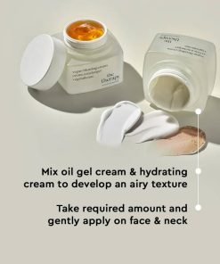 ¡Agrega esta crema de mezcla 2 en 1 a tu rutina diaria de cuidado de la piel! La crema de dos capas contiene un gel transparente en la capa superior y una crema altamente nutritiva en la capa inferior. La capa superior contiene aceites esenciales y un alto contenido (35% o más) de agentes hidratantes para proporcionar a la piel una hidratación profunda. La capa inferior contiene componentes lipídicos de la piel, incluyendo ceramida, mezclados en una proporción eficiente para ayudar a hidratar y fortalecer la piel. 60ml.