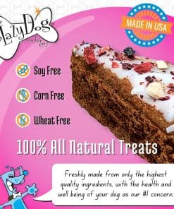 El Original Pup-PIE: Feliz cumpleaños para una niña preciosa cubierta con nuestra exclusiva capa no láctea espolvoreada con semillas de sésamo multicolores. Absolutamente SIN Trigo, Maíz y Soya | Sin OMG | SIN Leche | Peso Neto 5 oz. Ingredientes Saludables: Harina de Avena, Melaza de Caña, Calabaza, Mantequilla de Cacahuate (Cacahuate Molido), Recubrimiento (Azúcar de Caña, Aceite de Palma, Vainilla y Lecitina de Girasol), Semillas de Sésamo, Canela, Jengibre, Bicarbonato de Sodio y Color Agregado. (Todos los ingredientes son No OGM) Análisis de Contenido Proteína Cruda Mín 7.84 Grasa Cruda Mín 8.28 Fibra Cruda Máx 2.54 Humedad Máx 14.77 Solo 48 Calorías por rebanada de 0.5 oz. Ingredientes Saludables: Harina de Avena, Melaza de Caña, Calabaza, Mantequilla de Cacahuate (Cacahuate Molido), Recubrimiento (Azúcar de Caña, Aceite de Palma, Vainilla y Lecitina de Girasol), Semillas de Sésamo, Canela, Jengibre, Bicarbonato de Sodio y Color Agregado. (Todos los ingredientes son No OGM) Análisis – Proteína Cruda Mín% -7.84 Grasa Cruda Mín% -8.28 Fibra Cruda Máx% -2.54 Humedad Máx% -14.77 Solo 48 Calorías por rebanada de 0.5 oz. Esta pastelito suave horneado celebra su sabor con matices tostados de vainilla y miel. El tapioca endulza la avena enrollada y un sabor natural a humo es el toque final. ¡Premios 100% Naturales para Perros, Libres de Trigo-Maíz-Soya! Ingredientes: Avena en Hojuelas, Miel, Aceite de Palma, Suero de Leche, Vainilla, Harina de Arroz, Almidón de Tapioca, Azúcar de Caña, Sabor Natural a Humo, Color Natural Agregado y Cera de Carnauba. Análisis Garantizado: Proteína Cruda Mín. 6.61% Grasa Cruda Mín. 20.28% Fibra Cruda Máx. 83% Humedad Máx. 12.08%, Calorías por aproximadamente 1 premio de 0.25 onzas.