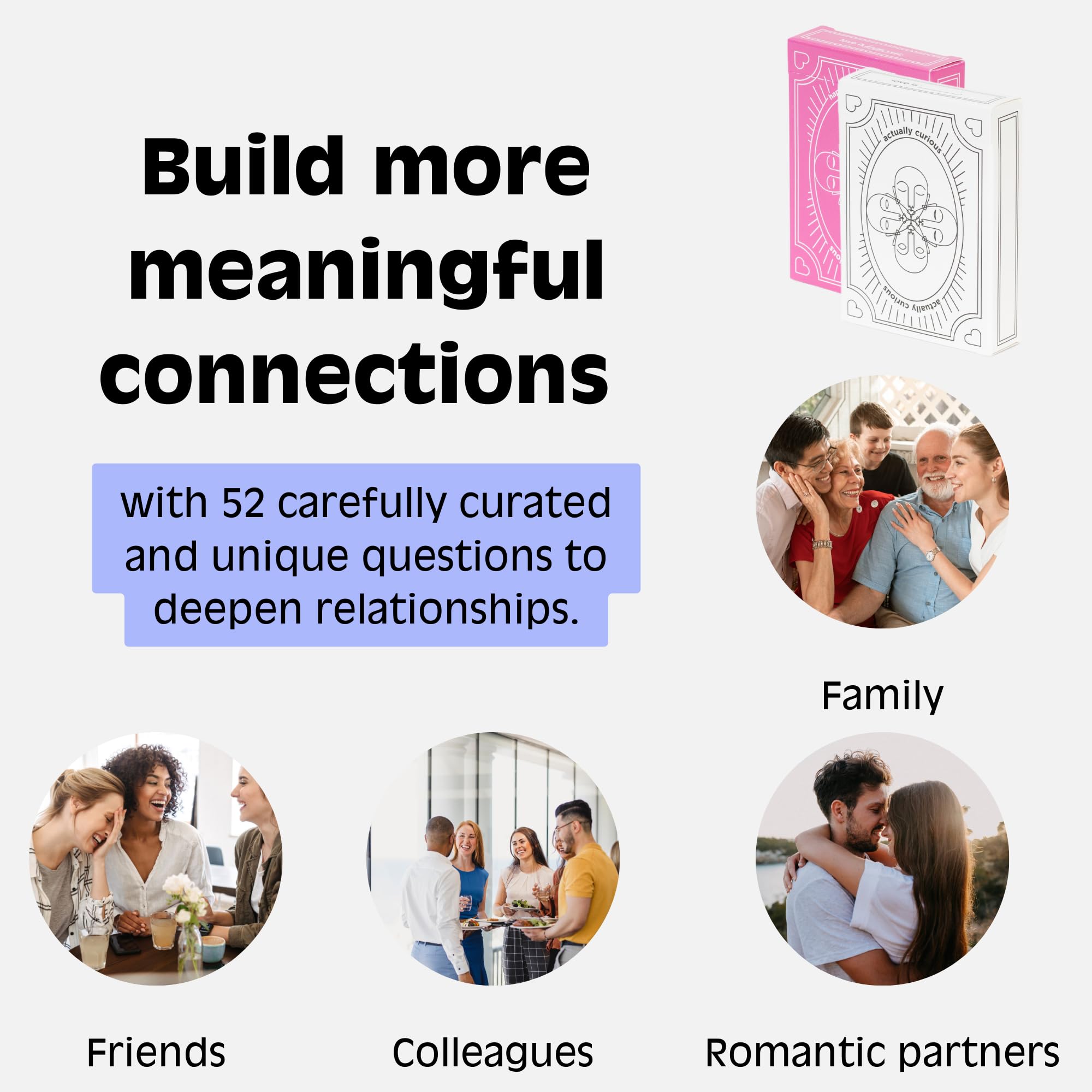 Descubre la herramienta definitiva para fomentar conexiones más profundas y provocar conversaciones significativas con la Caja de Inicio The NEW Actually Curious. Este conjunto de Cartas de Conversación Profunda cuidadosamente seleccionado está diseñado para mejorar tus relaciones, alegrar tus noches de juegos y servir como una opción ideal para regalos para aliviar el estrés. Ya sea que estés buscando regalos románticos para ella o juegos de cartas atractivos para familias, este paquete cumple con todos los frentes. Los entusiastas de los Juegos de Parejas encontrarán estas cartas perfectas como Juegos de Parejas para Adultos, haciendo que cada noche de cita sea un evento para recordar. No más silencios incómodos, solo diálogos profundos y enriquecedores que fortalecen tu vínculo. Transforma las sesiones de terapia en experiencias esclarecedoras con Juegos de Terapia que también sirven como Artículos para Aliviar la Ansiedad para Adultos y Artículos para Aliviar la Depresión. Con preguntas diversas diseñadas para promover la introspección y la comprensión mutua, este conjunto es una excelente adición al maletín de cualquier terapeuta. Los Juegos de Cartas Familiares no tienen por qué ser mundanos; ¡invítales con diversión impulsada por la conversación! Ideal como Regalos de Aniversario de 5 Años para Hombres o Regalos para Nuevas Relaciones, estas cartas crean momentos inolvidables ya sea que estés en casa o en movimiento, piensa en Juegos de Viaje para Adultos o Juegos de Oficina durante los descansos. Rivales de opciones populares como Apples to Apples o Were Not Really Strangers Game, pero ofrecen un enfoque distintivo en la conexión y la inteligencia emocional. Hazlo parte de tu colección si buscas Actividades en Pareja, Juegos de Noche de Citas o incluso Juegos de Dormitorio para Parejas. Desbloquea todo el potencial de cada interacción con la Caja de Inicio The NEW Actually Curious una opción imprescindible para cualquiera que busque relaciones más profundas y recuerdos más felices.