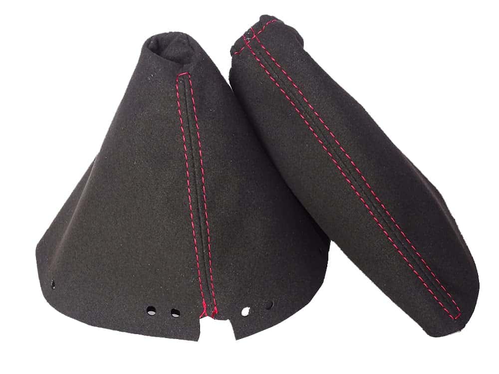 1. The Tuning-Shop Ltd Compatible with Shift Boot & E Brake Boot for Nissan 350Z 2002-2009 Suede Red Stitching.