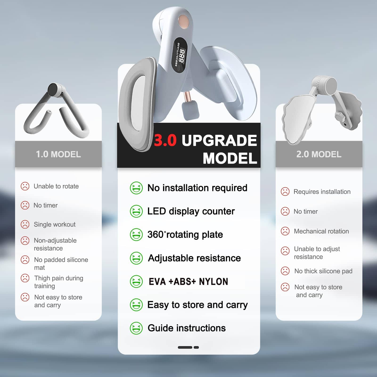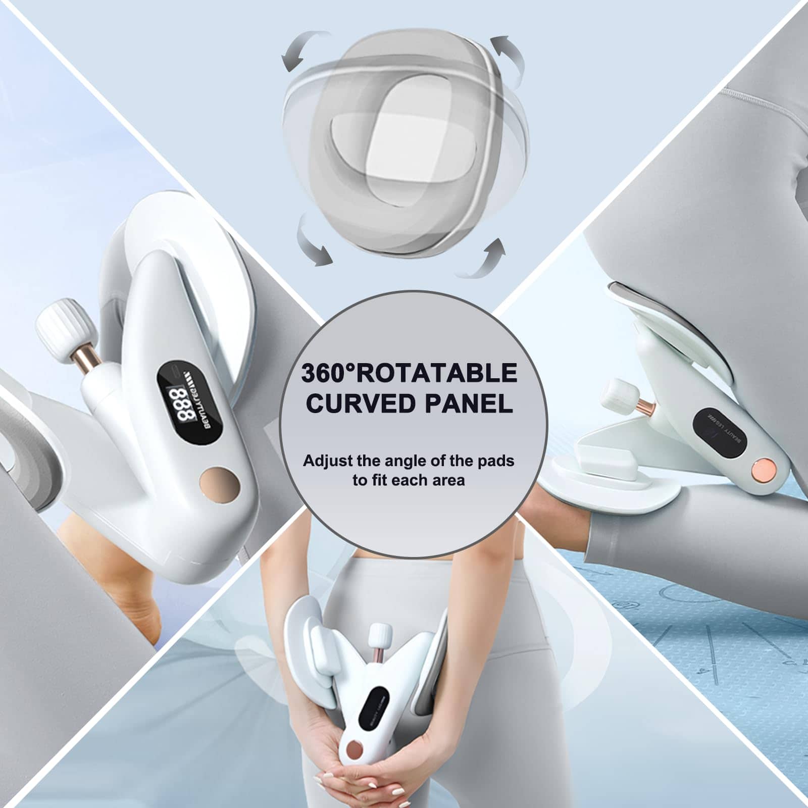3. Diseño Giratorio de 360 : El panel del entrenador de muslos puede girar 360 . El entrenador tiene una curvatura ergonómica y un panel elíptico giratorio de 360 . La abrazadera de pierna es de EVA +ABS+ nylon, y la banda de tensión es de material TPE.