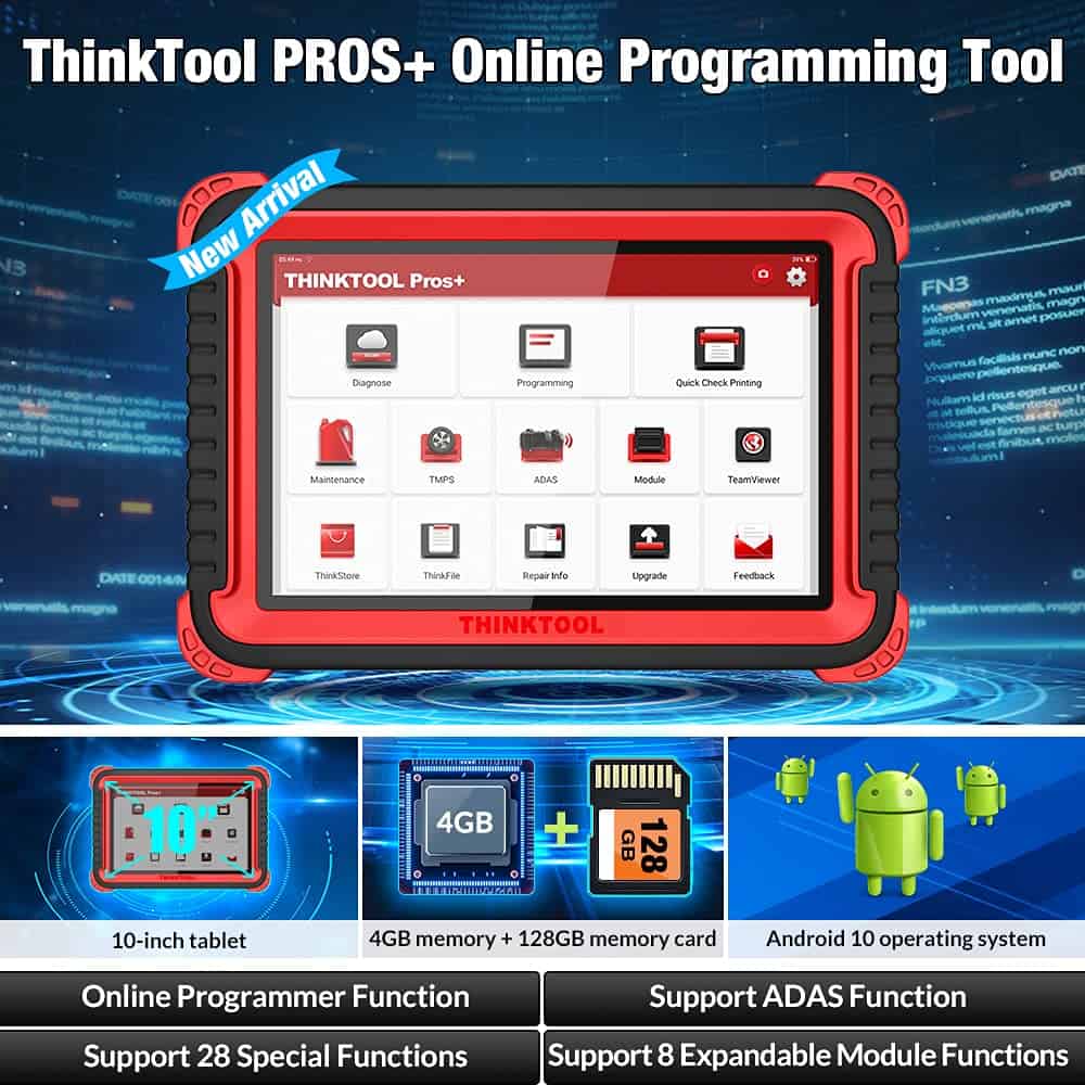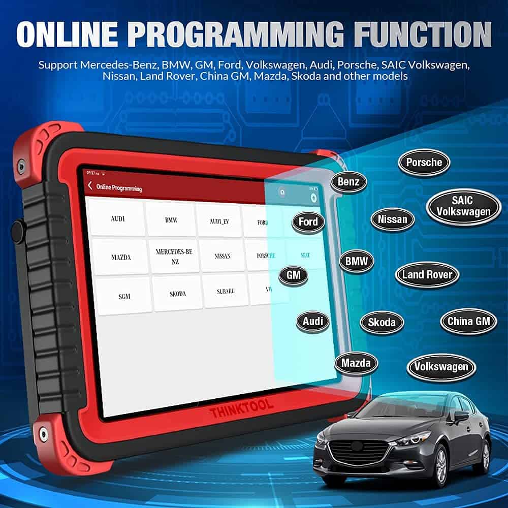 1. Escáner de herramientas de programación en línea Think Tool PROS + que admite programación y codificación, es decir, utilizando tecnología de transmisión de comunicación electrónica para escribir información de control relacionada con el software en EPROM o FLASH programable. ThinkTool PROS + admite la identificación inteligente de archivos de programación, y la operación es conveniente y rápida. Admite la función de programación de modelos Mercedes-Benz, BMW, Ford, Audi, Range Rover, Nissan, SKODA, SEAT, Mazda y otros.