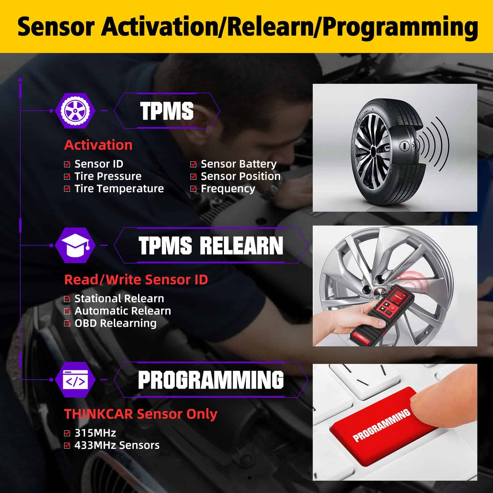 1. Activar una amplia gama de sensores OEM y universales de 315 MHz y 433 MHz en el mercado.