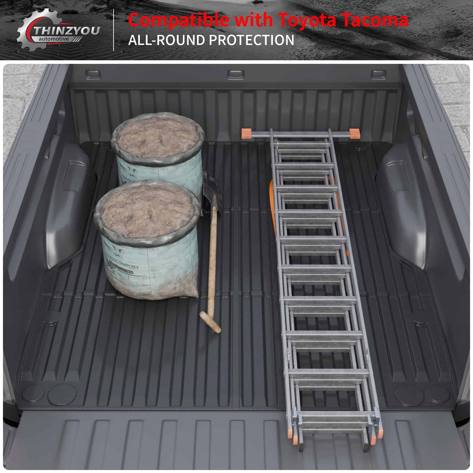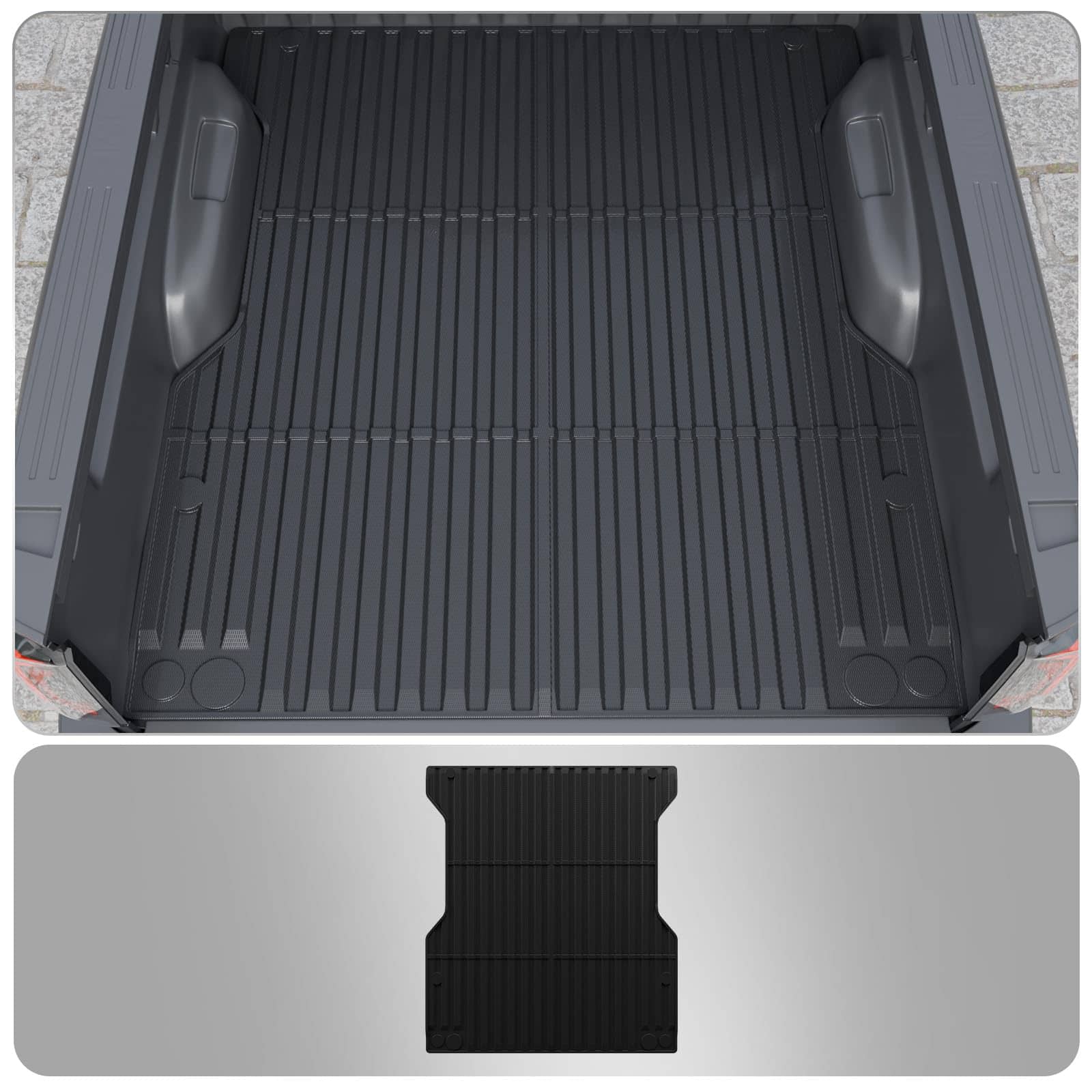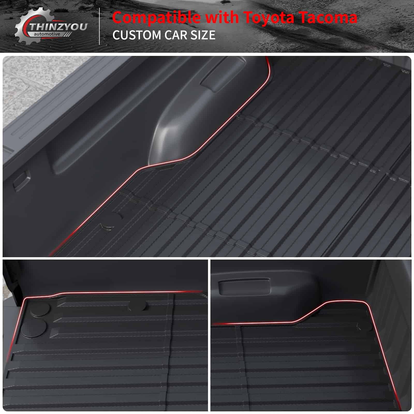 1. Compatibilidad: De acuerdo con el diseño original del automóvil, nuestro tapete para cama de camión es compatible con Toyota Tacoma 2024 2025 con cama corta de 5 pies. Por favor, confirme el año, la marca y el modelo de su automóvil antes de comprar.