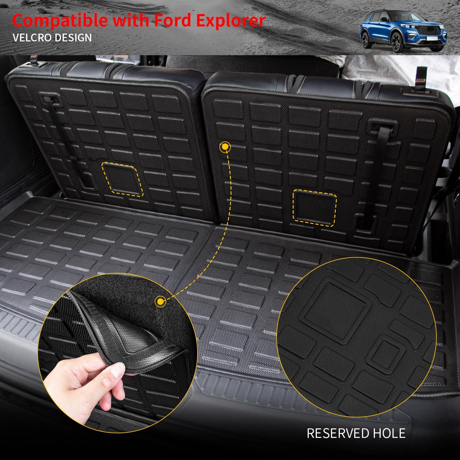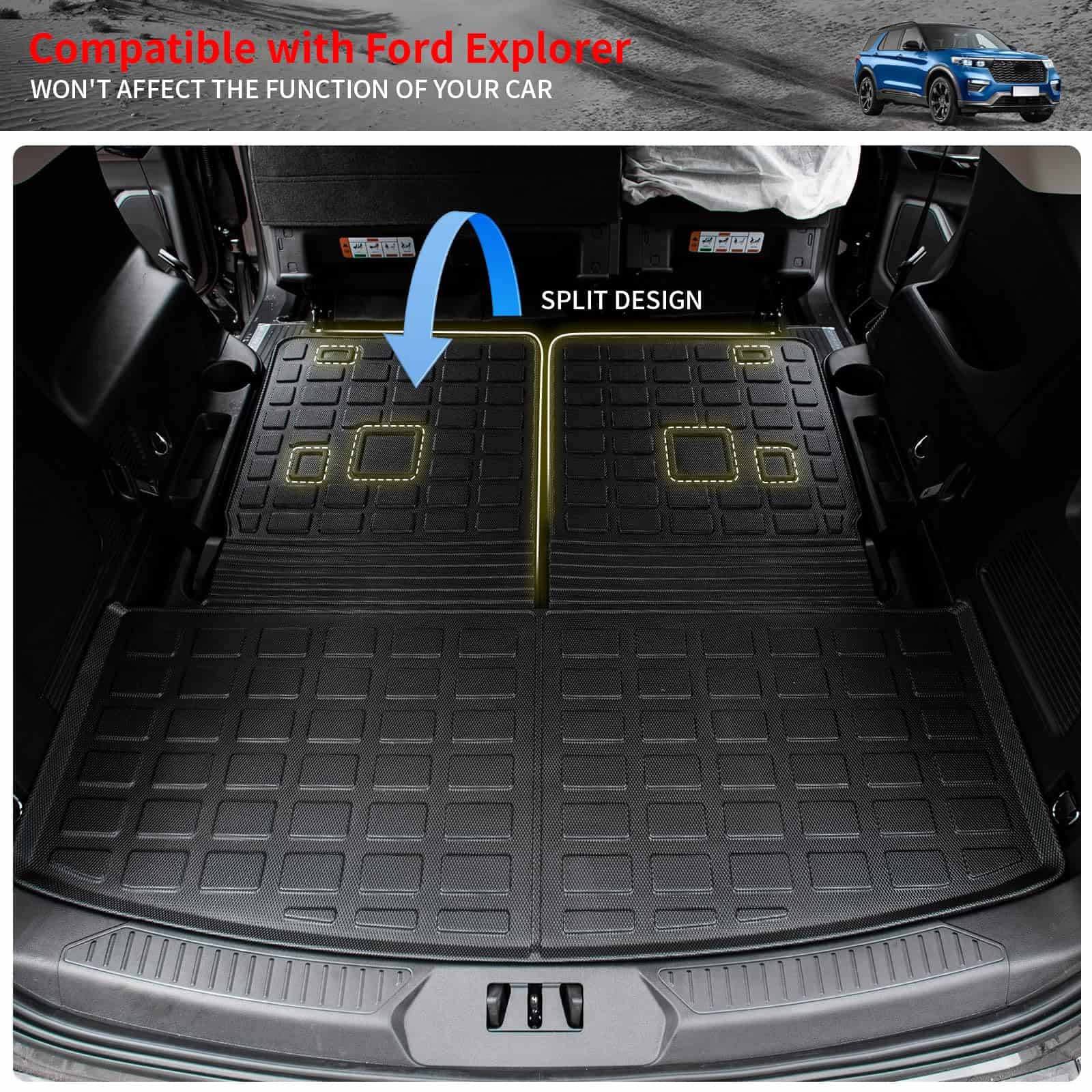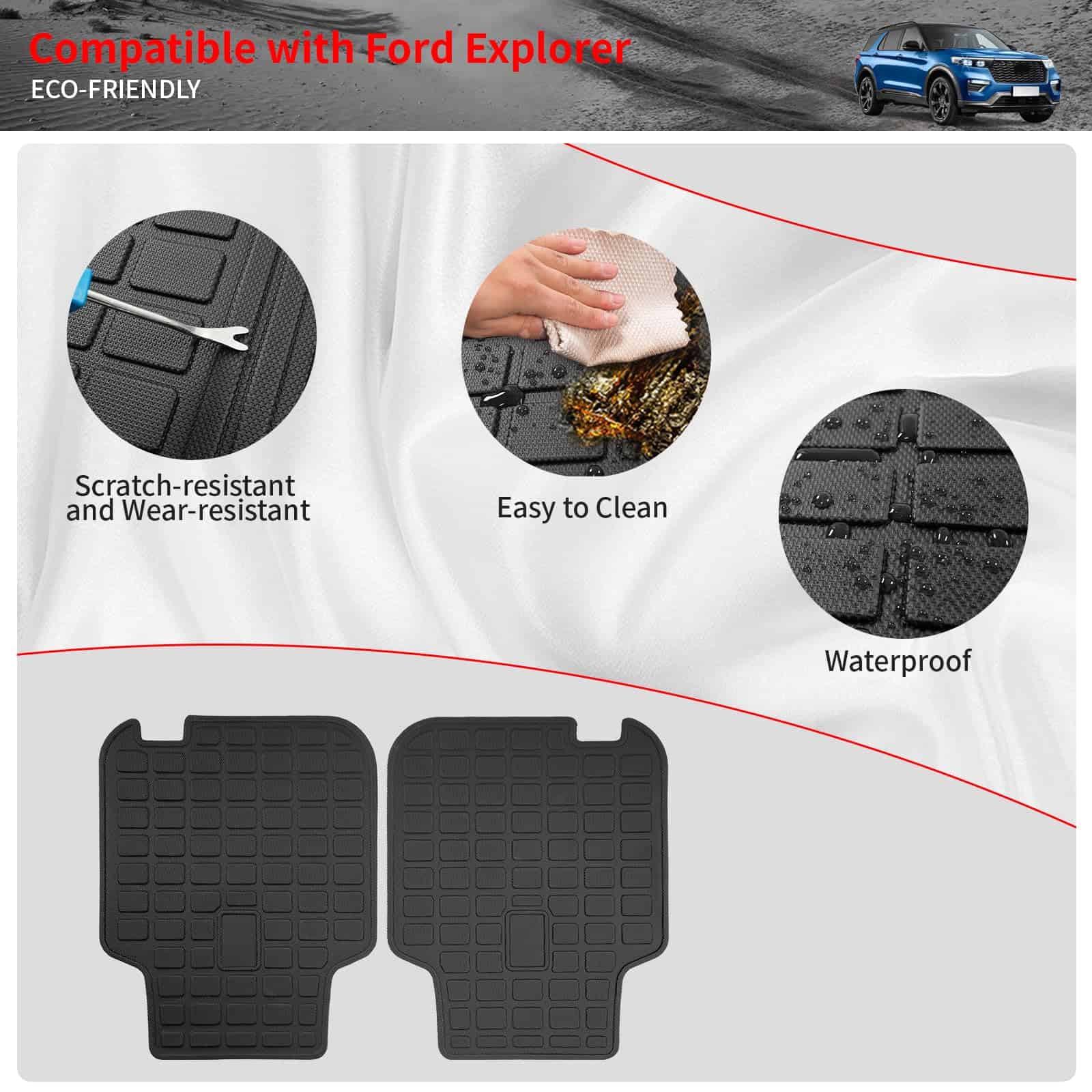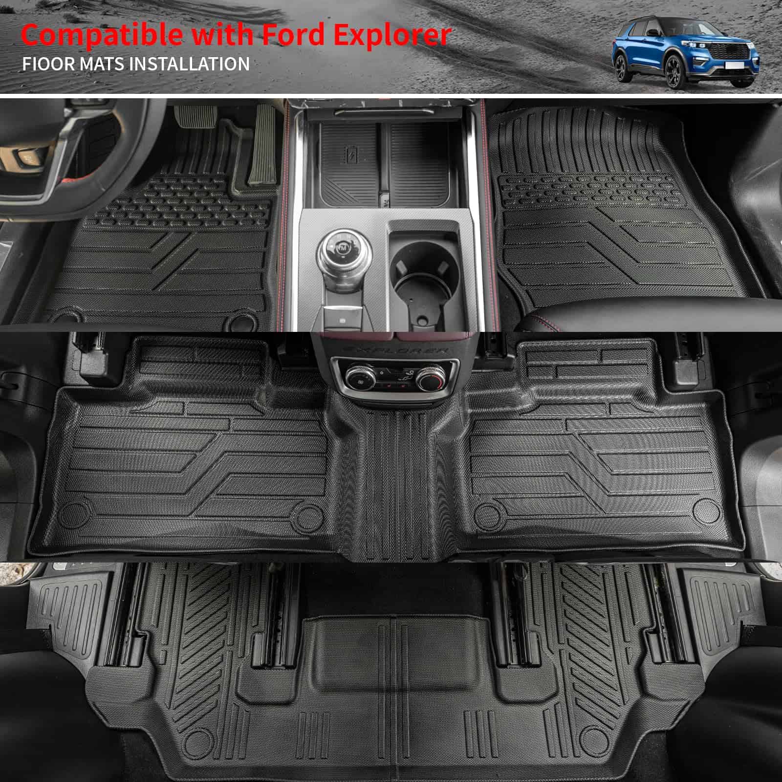 5. Garantía: Si tiene algún problema con las alfombrillas para Ford Explorer 6 Asientos 2020-2025, envíenos un correo electrónico. Al mismo tiempo, nuestro equipo de posventa espera sus comentarios sobre el uso. Consejos amigables: Si recibe la alfombrilla con pliegues, puede exponerla al sol para restaurar su planitud.