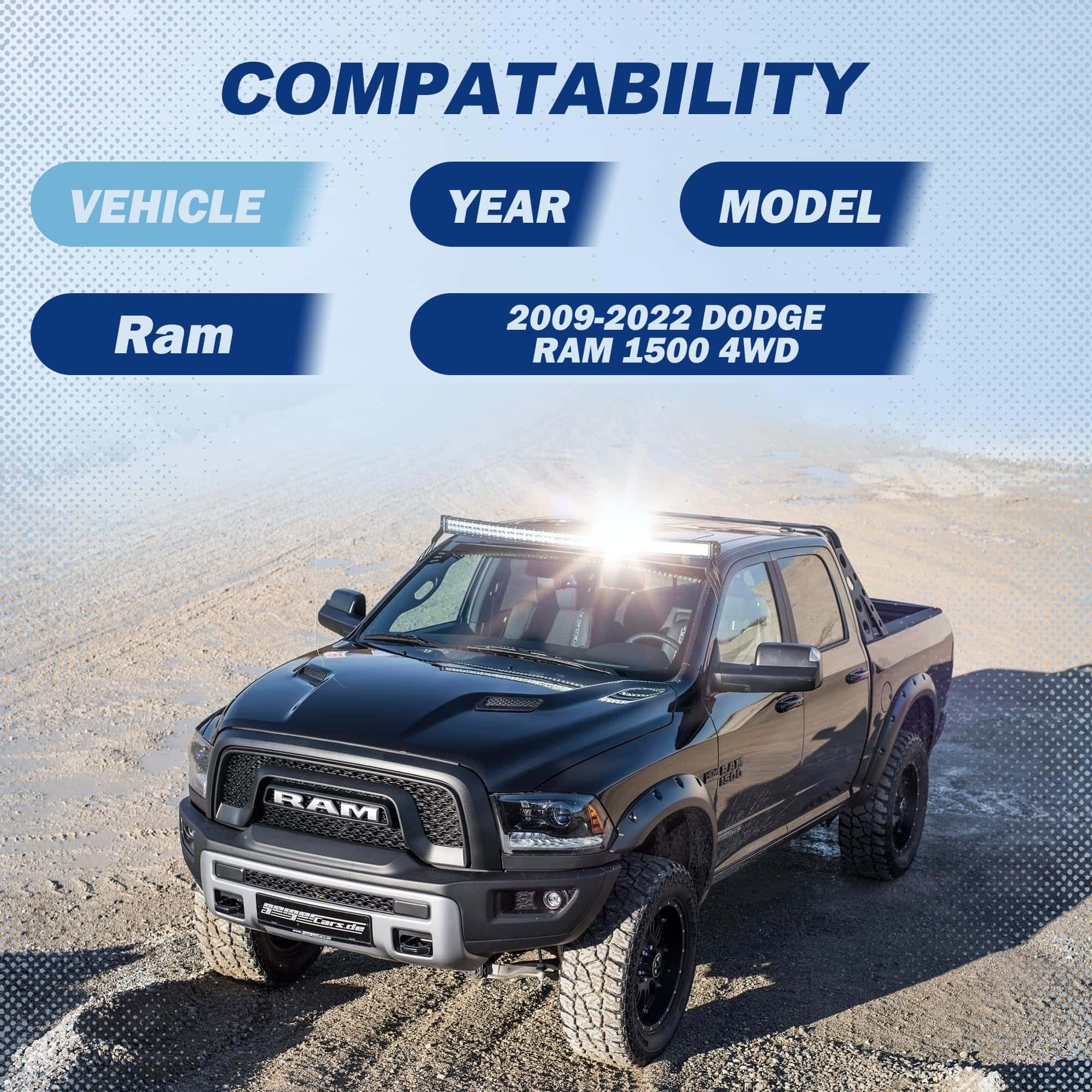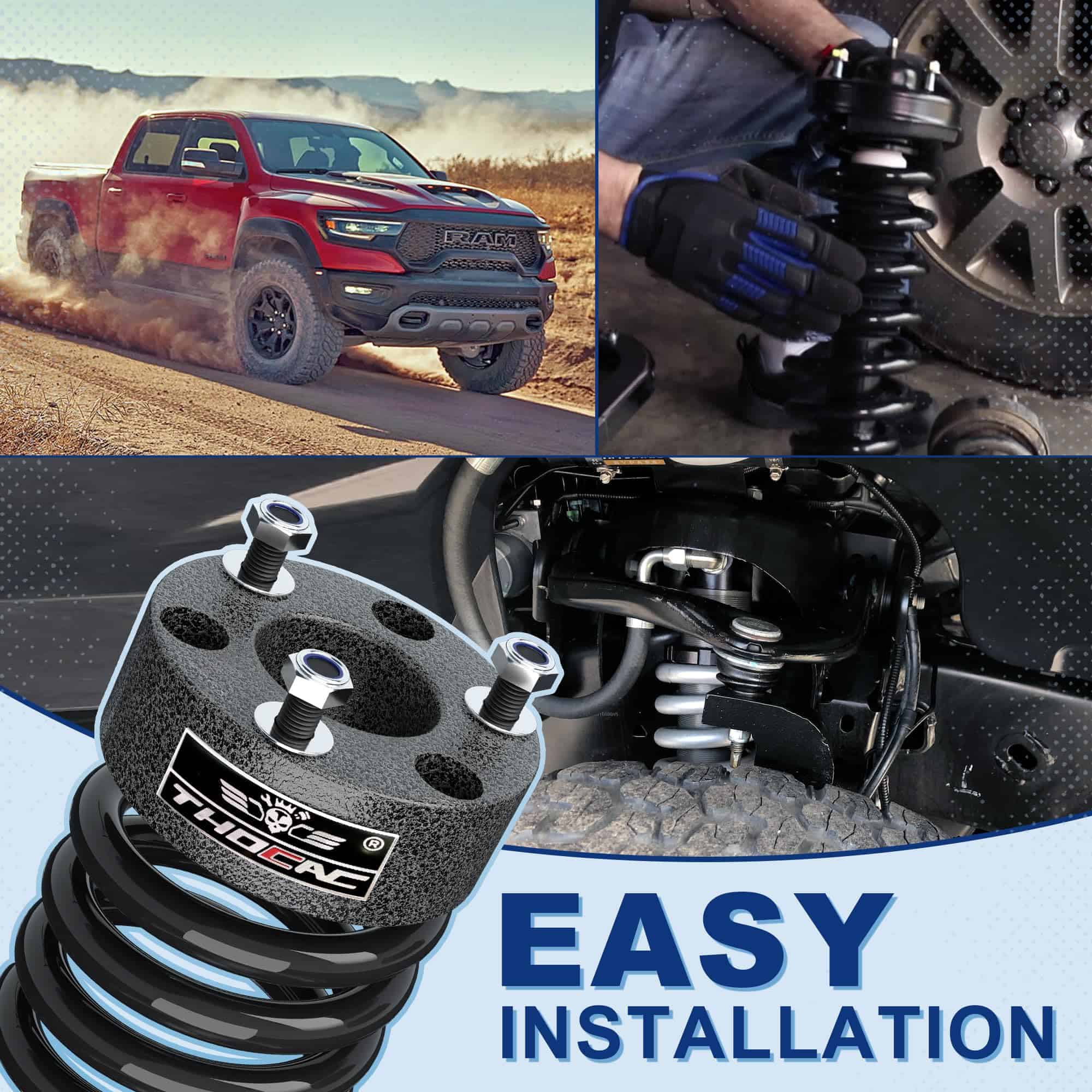 Este kit de elevación de nivelación es compatible con Dodge Ram 1500 (4WD) 2009-2019; Dodge Ram 1500 (2WD/4WD) 2020-2024; Dodge Dakota (2WD/4WD) 2005-2011; Raider (2WD/4WD) 2006-2009. El kit mejorará la altura de la rueda delantera en 3 pulgadas y la trasera en 2 pulgadas, utilizando tecnología de alta temperatura recubierta en polvo a 280 grados para una mayor durabilidad. Fabricado en aleación de aluminio 6061-T6 y procesado por CNC automático, incluye pernos de grado 10.9. Experimenta una conducción excepcional con este kit de nivelación.