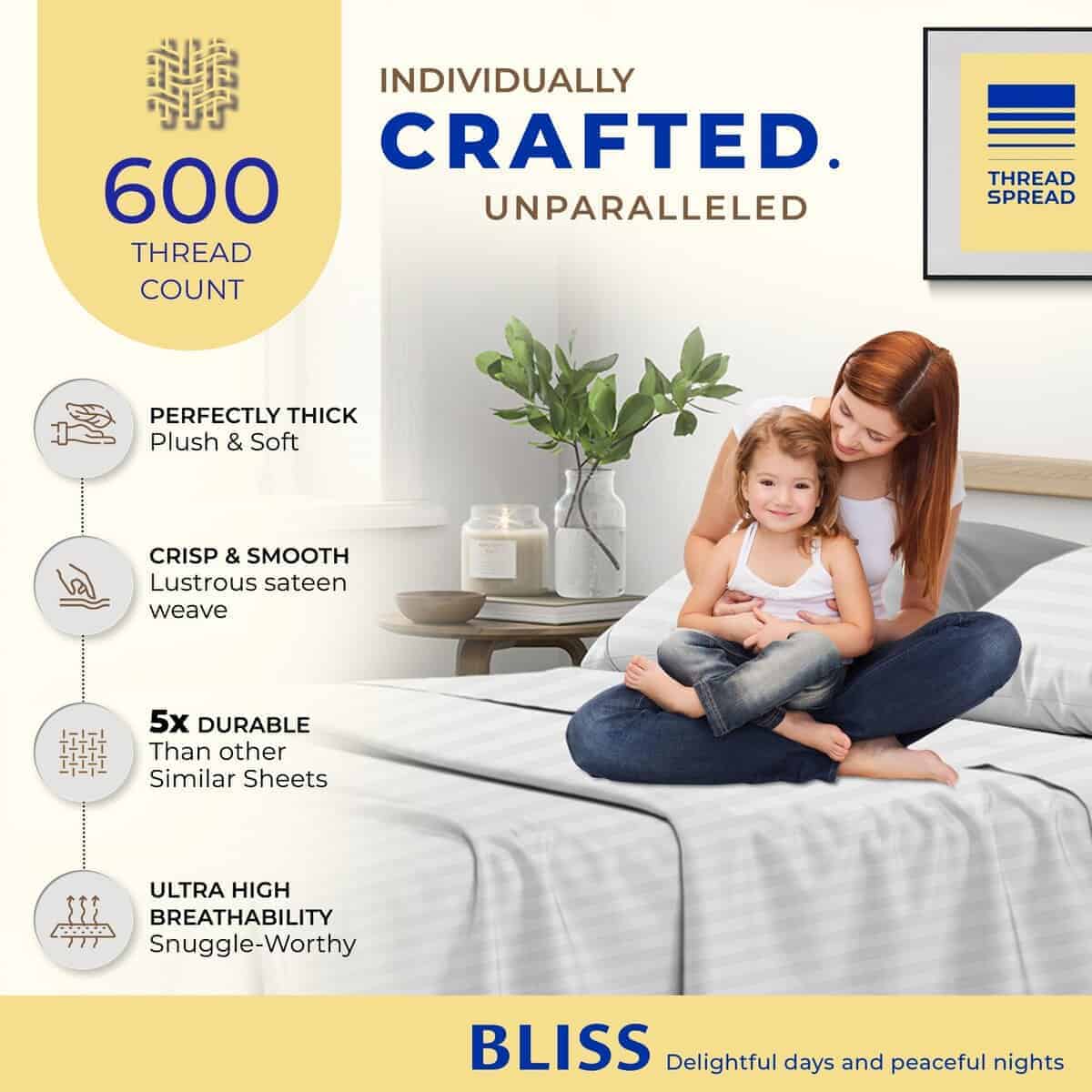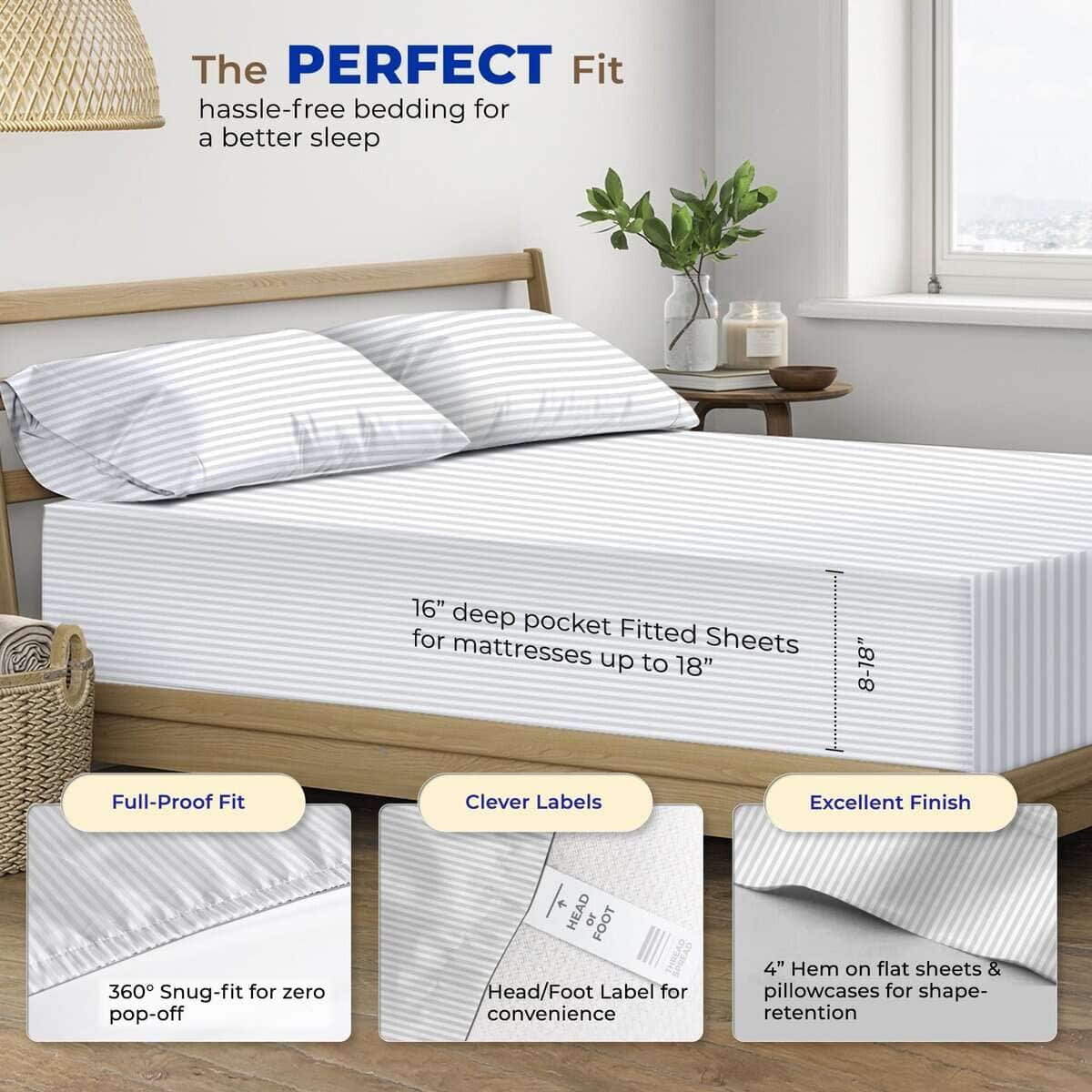 THREAD SPREAD Juego de Sábanas de Rayas de Lujo de Algodón