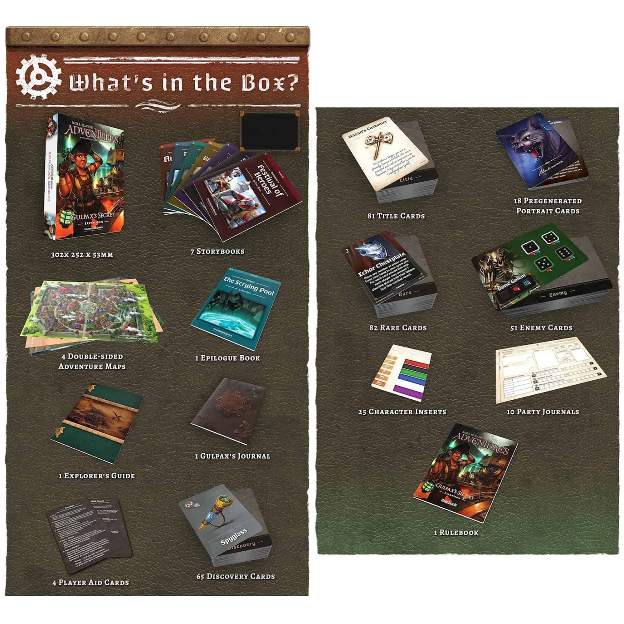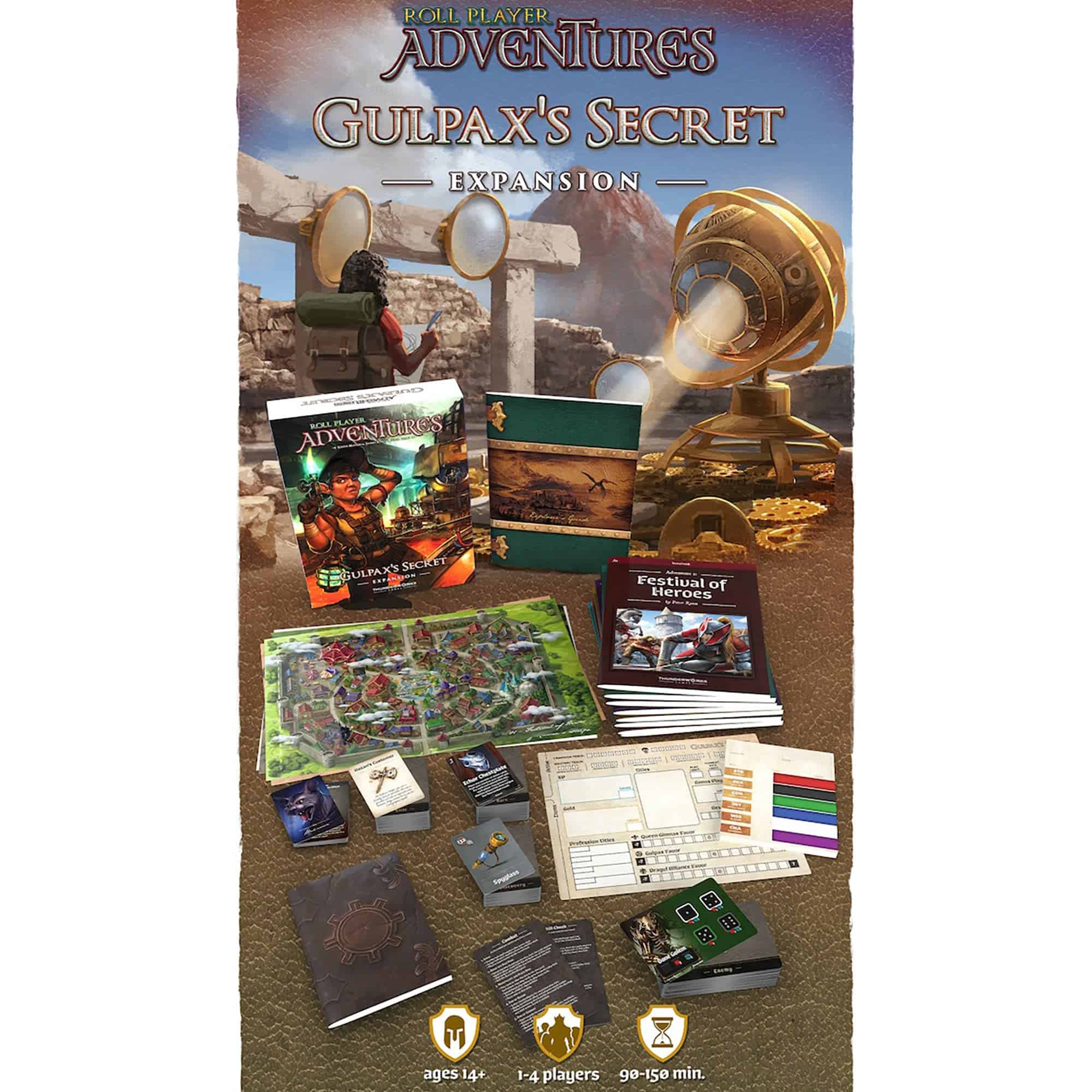 ROLL PLAYER ADVENTURES: EXPANSIÓN EL SECRETO DE GULPAX es una nueva campaña de siete aventuras ambientada 2.000 años antes de Roll Player Adventures. La reina Gimnax y la incipiente alianza Dragul se dirigen hacia la guerra, y Gulpax el Artesano tiene la clave. Dos mil años antes del regreso de Azema a través del portal en Brizoor Waal, el mundo de Ulos está en paz. Pero una nueva era comienza: Para unificar Ulos bajo una sola bandera, la reina Gimnax establece la nación de Nalos. Otros se unen, formando la Alianza Dragul para resistir al reino en crecimiento de la reina Gnomish. Mientras tanto, el mayor inventor de Ulos, Gulpax el Artesano, construye un misterioso artefacto de tremendo poder en la Extensión Congelada. La paz disfrutada en todo Ulos amenaza con deshacerse. El Expansión El Secreto de Gulpax requiere el juego base de Roll Player Adventures para jugar. ¡Embarca en un viaje heroico con tu héroe! Elige entre uno de los dieciocho personajes pregenerados o una multitud de personajes adicionales – ya sea de treinta y seis personajes pregenerados de Adventures o cualquier personaje completado de Roll Player. Los jugadores asumen el papel de héroes de fantasía para enfrentar nuevos desafíos, explorar nuevos entornos, conocer nuevos personajes en el mundo de Ulos y tomar decisiones significativas que cambian la historia. ¡Nuestros personajes de Roll Player han sido llamados a la aventura! En Monsters & Minions, fuiste a la guerra contra los invasores Dragul. En Fiends & Familiars, hiciste amistad con bestias salvajes y disipaste espíritus crueles. Ahora tus héroes completamente formados y endurecidos en la batalla deben defender el reino de Nalos y descubrir un misterio que se encuentra en el corazón de las Tierras Abandonadas. Navega por tus misiones con cuidado. Depende de ti a quién hacer amigo y a quién enfrentar. ¿Matarás al Troll Gigante, o intentarás hacer las paces? ¿Cumplirás los deseos del Vampiro, o defenderás a los misteriosos cultistas que él quiere destruir? ¿Permanecerás leal al Rey y al País, o te pondrás del lado de los enemigos de Nalos? Cualquiera sea la elección que hagas, alguien recordará y responderá. Roll Player Adventures es un juego de mesa de libro de aventuras cooperativas para 1-4 jugadores ambientado en el mundo de Roll Player. Los jugadores encarnan personajes, enfrentan desafíos y toman decisiones que cambiarán la historia a medida que avanzan a través de 11 Aventuras principales y una Misión Secundaria replayable. Elige entre uno de los personajes pregenerados, o importa un personaje favorito de Roll Player y llévalo en un viaje heroico. Si importas un personaje que has construido en Roll Player, cualquier cantidad de expansiones y cualquier cantidad de cartas/promociones que se hayan utilizado pueden seguir utilizándose en Roll Player Adventures.