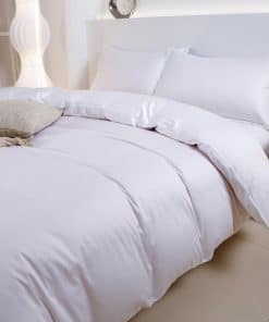 Este es un set de funda nórdica de 3 piezas que está hecho de 100% algodón. El set incluye una funda nórdica y dos fundas de almohada, todas diseñadas en un color sólido. La funda nórdica tiene un cierre de cremallera oculto, lo que facilita ponerlo y quitarlo. Las fundas de almohada tienen cierres de sobre, lo que permite una fácil inserción y extracción de las almohadas. El set de funda nórdica es suave, cómodo y transpirable, lo que lo hace ideal para su uso en todas las estaciones. También es lavable a máquina y fácil de cuidar. Este set de funda nórdica es una gran adición a cualquier decoración de dormitorio y agregará un toque de elegancia y sofisticación a tu espacio.
