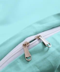 Este es un juego de 3 piezas de funda de edredón que está hecho de 100% algodón. El set incluye una funda de edredón y dos fundas de almohada, todas diseñadas en un color sólido. La funda de edredón tiene un cierre de cremallera oculto, lo que facilita su colocación y extracción. Las fundas de almohada tienen cierres de sobre, que permiten una fácil inserción y extracción de las almohadas. El juego de funda de edredón es suave, cómodo y transpirable, lo que lo hace ideal para su uso en todas las temporadas. También es lavable a máquina y fácil de cuidar. Este juego de funda de edredón es una excelente adición a cualquier decoración de dormitorio y añadirá un toque de elegancia y sofisticación a tu espacio.
