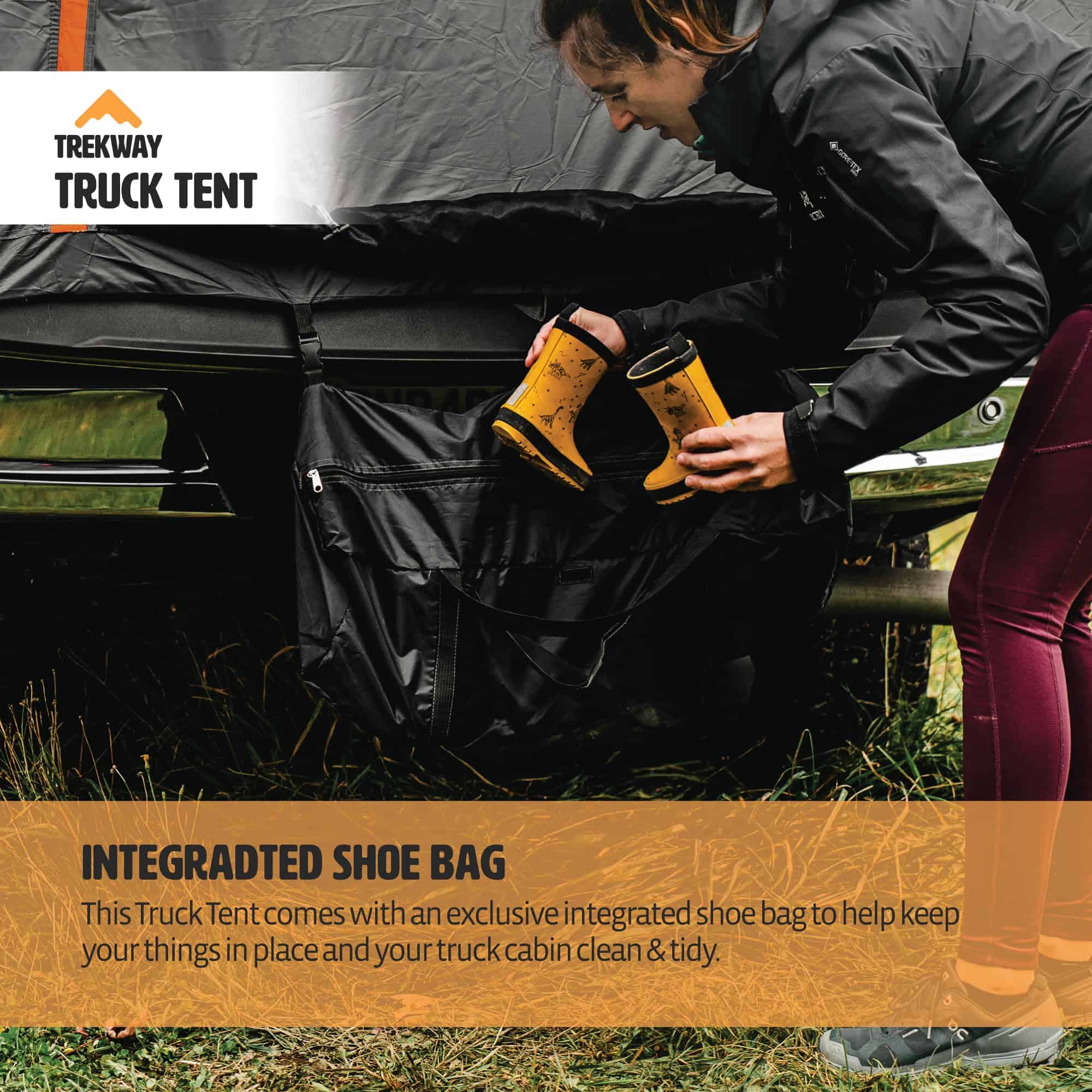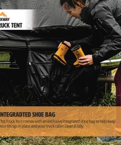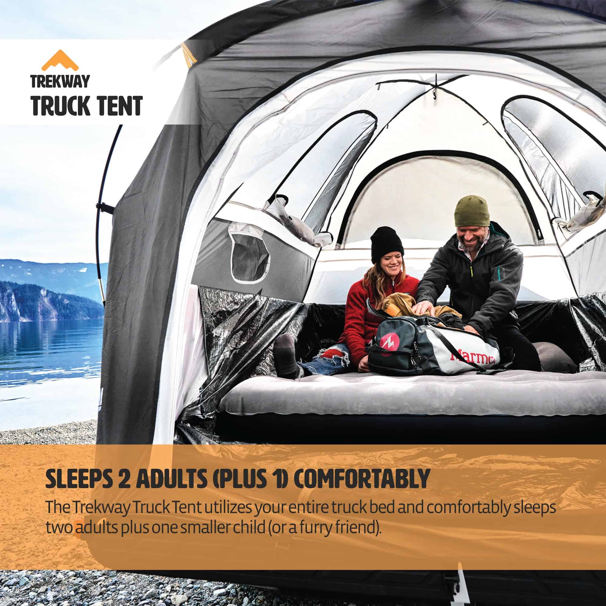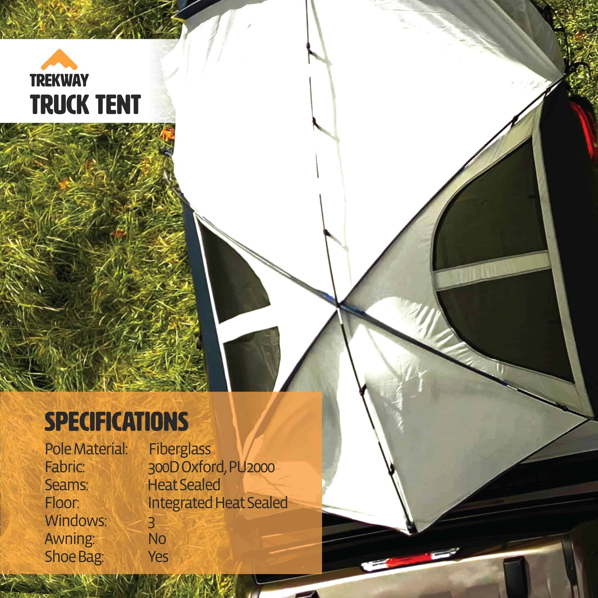 ¡Obtén tu mejor noche de sueño con la Tienda de Campaña Granville II! La Granville II es la tienda de camión más lujosa disponible. El piso cosido te mantendrá seco y limpio, mientras TRES ventanas grandes con ventanas de malla Bug-Be-Gone mantienen la tienda bien ventilada. La ventana de acceso trasera se abre completamente y también cuenta con una solapa Storm Guard que te permite acceder fácilmente a la cabina de tu camión y tomas de corriente mientras brinda protección adicional contra la lluvia. Cada tienda también incluye una resistente cubierta de lluvia para mayor privacidad y protección contra los elementos. ¡La instalación es pan comido! La instalación solo toma minutos gracias a los postes codificados por colores y las instrucciones fáciles de seguir. La instalación es más fácil con un compañero pero también es posible hacerlo solo. Los clips sin rayones de goma presentan correas elasticizadas para hacer que el ajuste a tu camioneta sea el más fácil de cualquier tienda en el mercado.