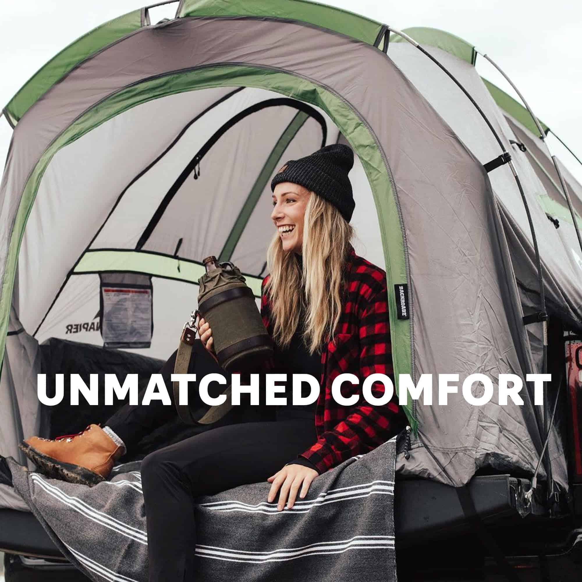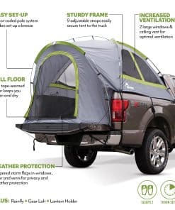 No tiene un plan? No hay problema. La tienda de campaña para la cama de la camioneta Backroadz fue construida pensando en los exteriores. Con su montaje simple y seguro, puedes tener un refugio espacioso con más de 5 pies de altura en cuestión de minutos. La puerta grande facilita la entrada, y con solapas y suelo cosidos contra tormentas, la privacidad y la protección contra el clima nunca son un problema. ¡Para una protección adicional, simplemente coloca la mosquitera incluida! Disfruta de tus vacaciones al aire libre en cada temporada con esta tienda resistente y duradera.