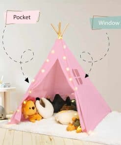 Tienda de campaña rosa adorable para niños con luces de