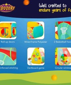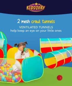 Esta tienda de juego de pelotas para niños incluye todo lo necesario para horas de diversión. Viene con un túnel conectado a la tienda para una experiencia de juego más divertida. Perfecto para entretener a bebés y niños en interiores y exteriores. ¡Añade diversión y emoción a la vida de tus pequeños con esta tienda de juego de pelotas y túnel!