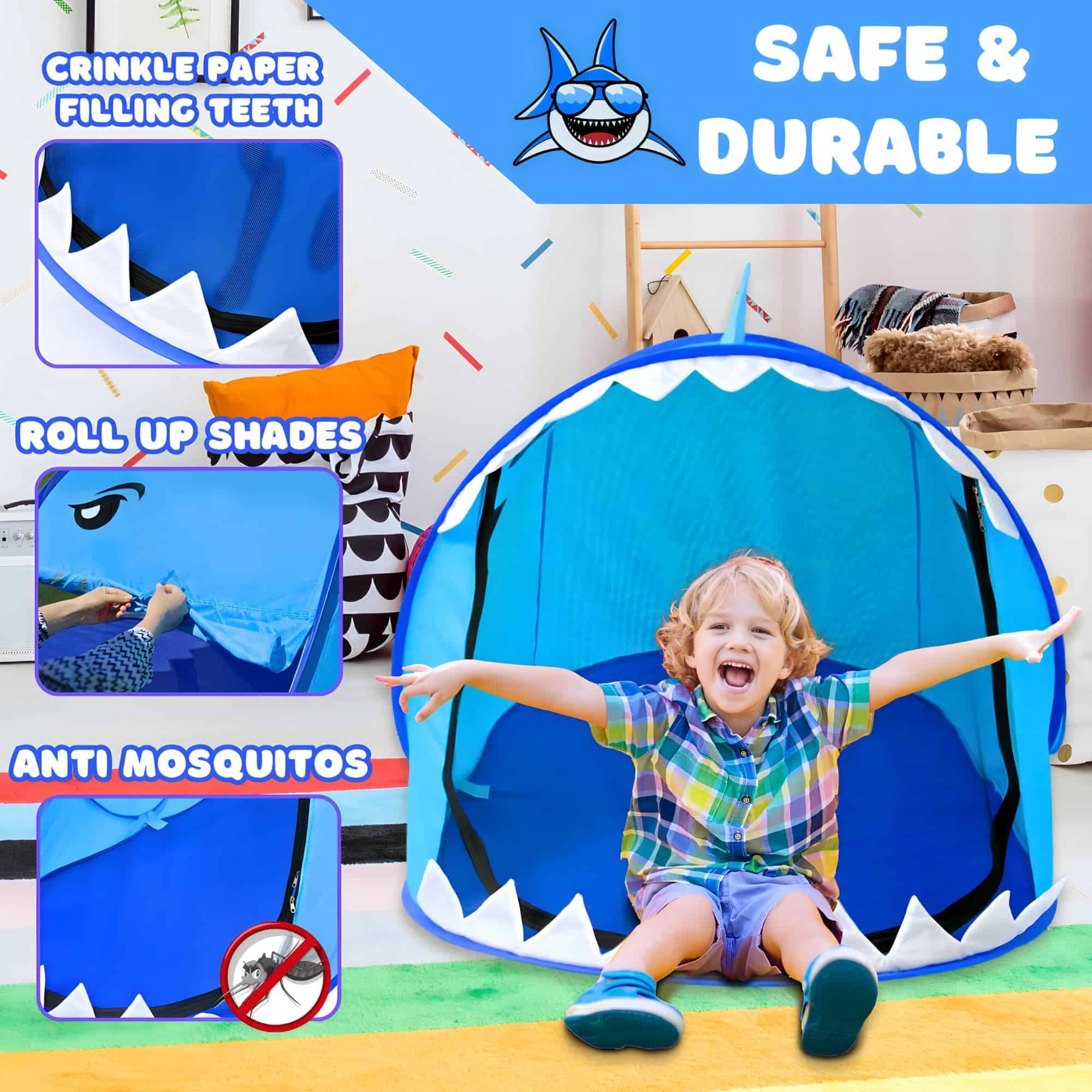 Presentamos la tienda de juego para niños PlenPLAY Blue Shark Pop-Up: Deja que la imaginación de tu hijo se sumerja en el mundo submarino con este encantador juego de tienda de tiburón. Perfecta para aventuras tanto en interiores como en exteriores, esta tienda de juego promete horas de juego imaginativo y exploración.