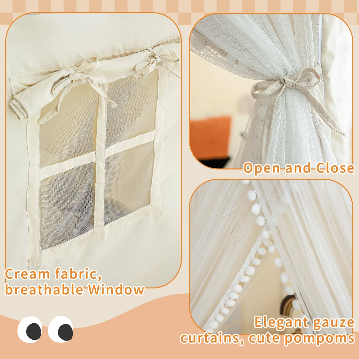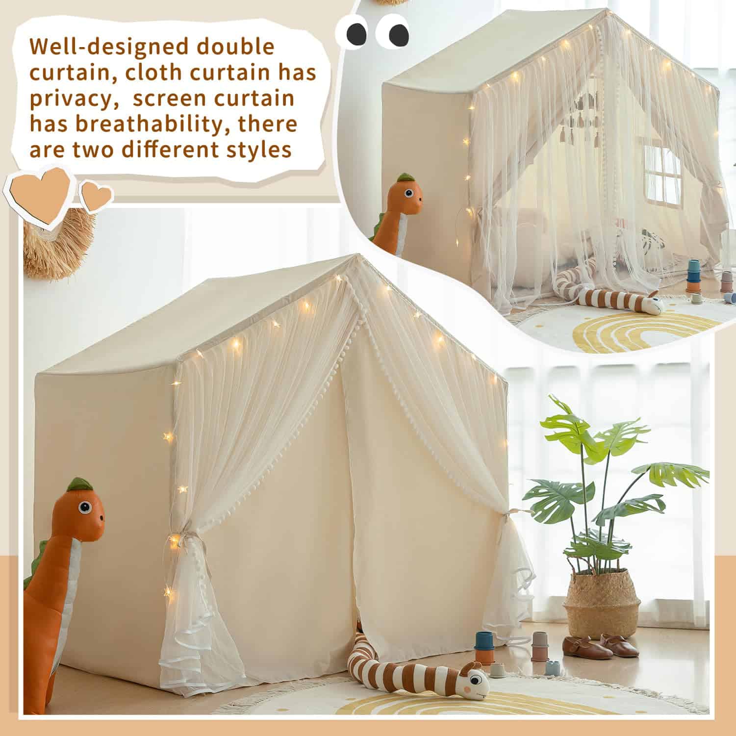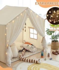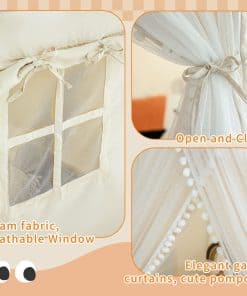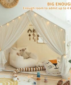 Kids Play Tent, Kids Tent Large Princess Castle Pompoms Play Tent Indoor Playhouse Tent for Girl, Come with Star Lights