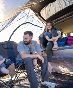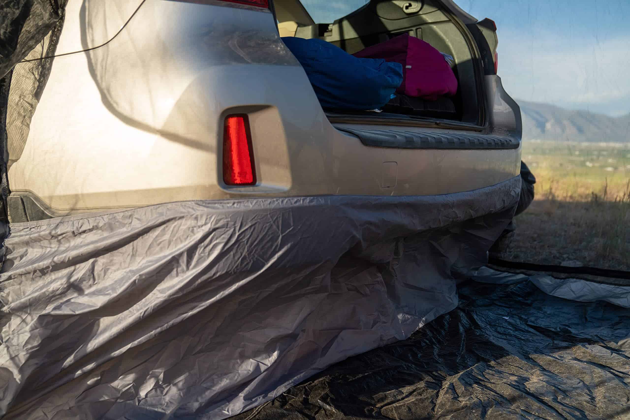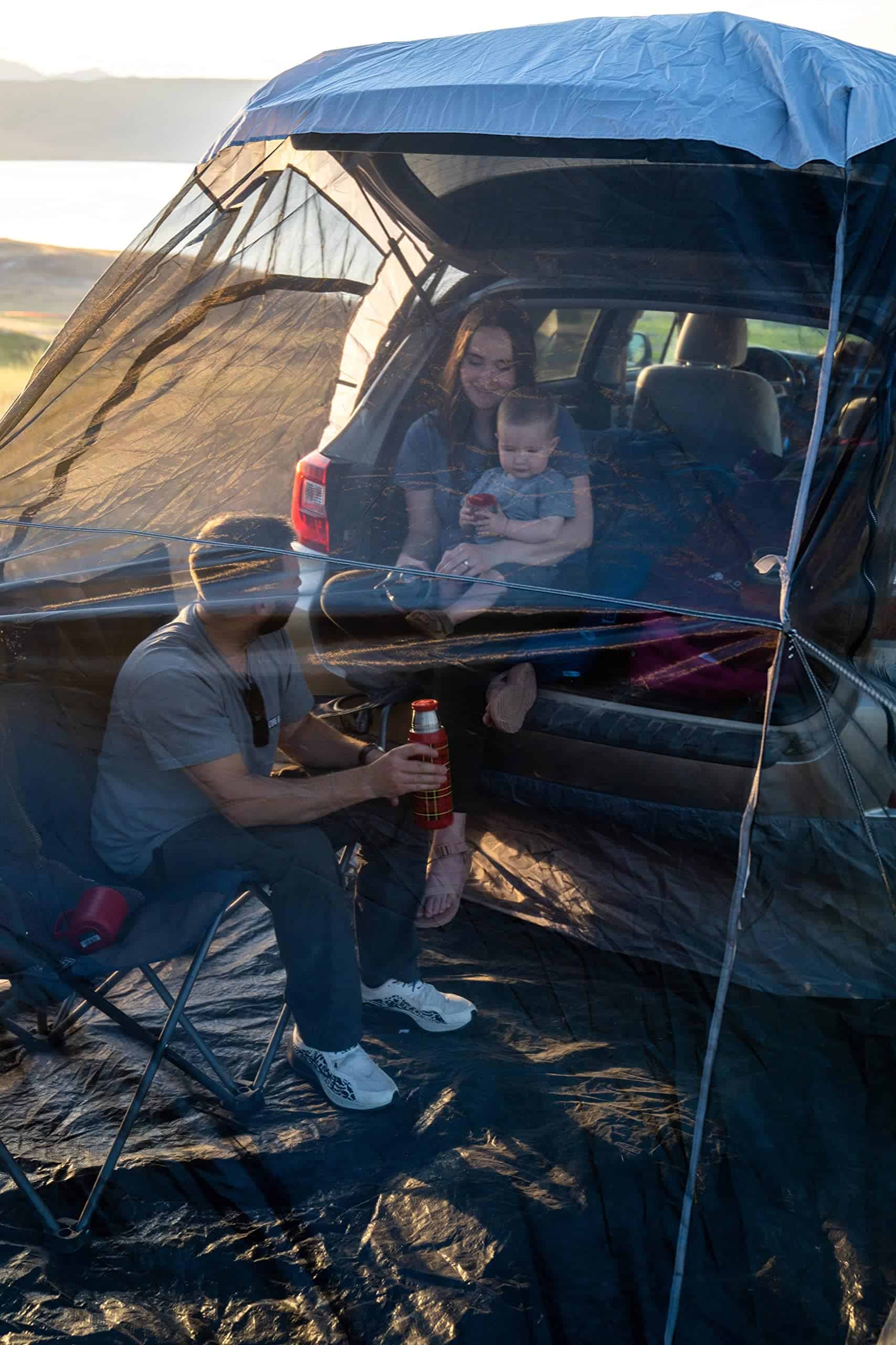 Ten en cuenta que esta tienda no es independiente. Opera como una extensión de la cabina de tu auto, requiriendo una puerta de hatchback para mantenerla arriba.