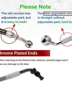 Fitment: Compatible con modelos Softail con ABS y manillar de 12″ a partir de 2018. Características: Nuevo 100%. Material: Acero trenzado de alta calidad actualizado. Actualice su motocicleta con nuestra línea de freno delantero extendida para un rendimiento, estilo y seguridad mejorados, con una longitud extendida para manillares o alzas más altos, construcción de acero inoxidable trenzado de alta calidad, con su longitud extendida, operación suave y fácil instalación, nuestra línea de freno ofrece una mejora integral que hará una diferencia notable en la funcionalidad de su motocicleta y en su disfrute de conducción. Paquete: 1 línea de freno delantero según se muestra en la imagen, sin instrucciones. NOTA: Por favor, envíenos un mensaje si tiene algún problema con el producto, luego le ofreceremos buenas soluciones, gracias.