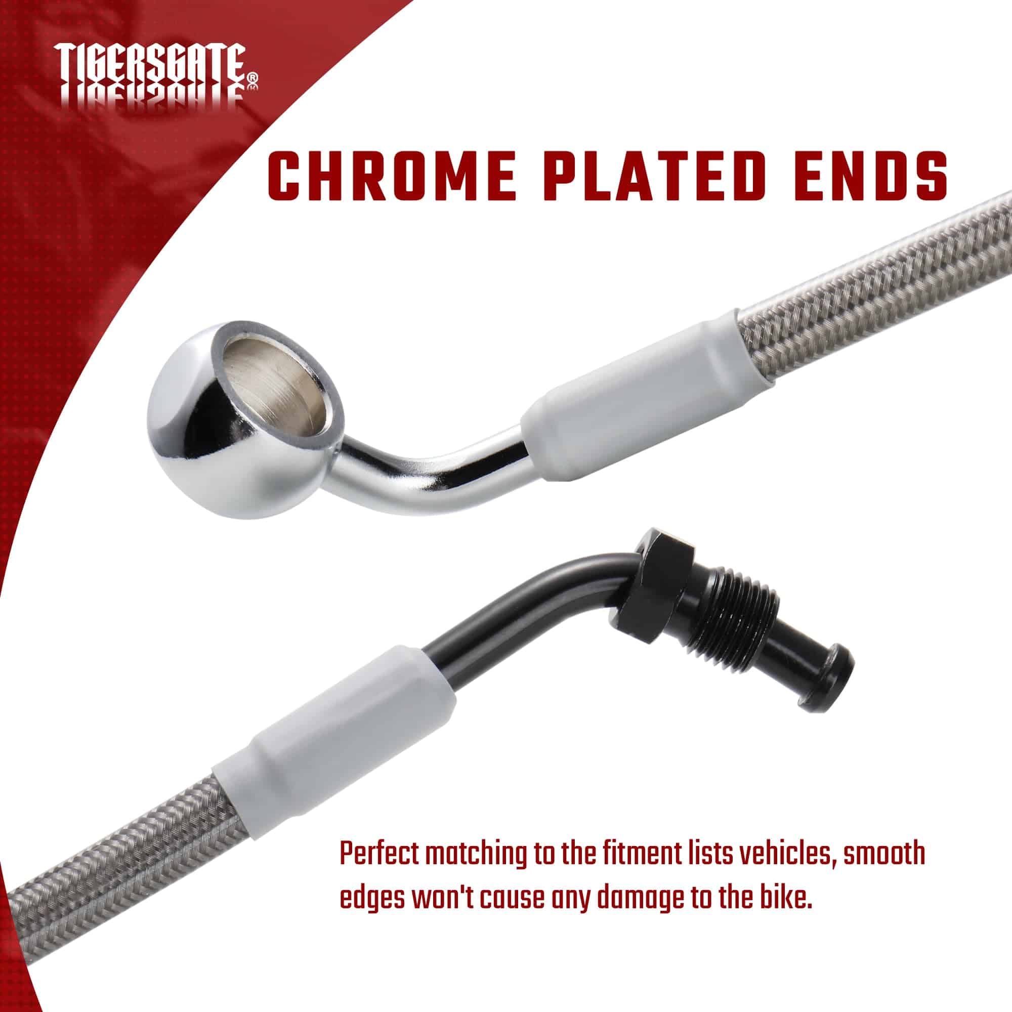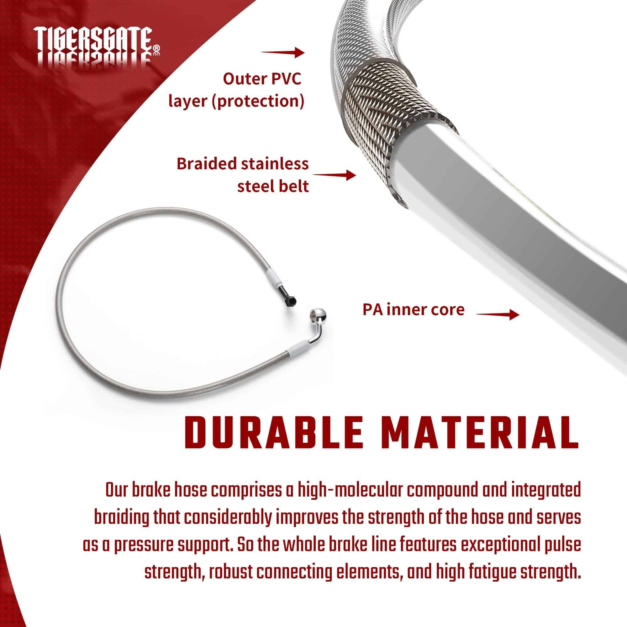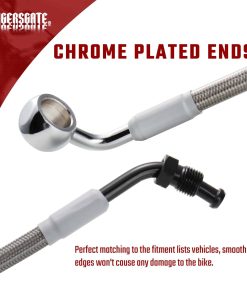 Actualiza tu motocicleta con nuestra línea de freno delantero extendida para un rendimiento, estilo y seguridad mejorados, con una longitud extendida para manillares o elevadores más altos, construcción de acero trenzado de alta calidad, con su longitud extendida, operación suave y fácil instalación, nuestra línea de freno ofrece una actualización integral que marcará una diferencia notable en la funcionalidad de tu motocicleta y tu disfrute al conducir.