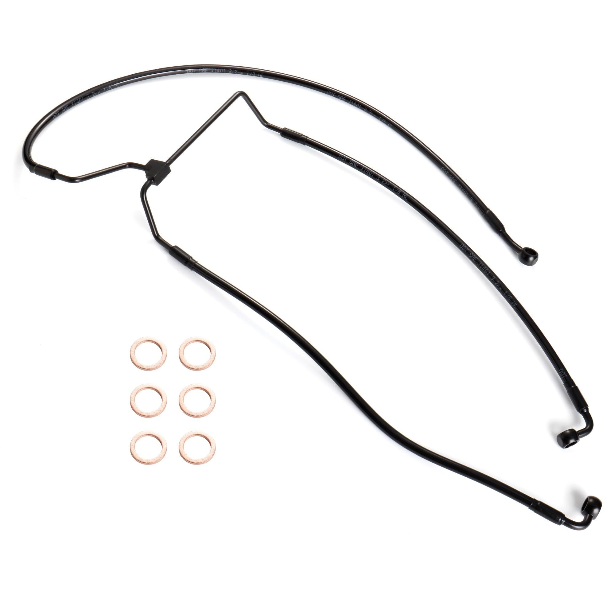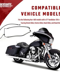 Sustituye al OEM de H-D 41679-09. Compatible con los modelos Touring sin ABS con manillar de 12″ desde 2014 en adelante: Street Glide, Electra Glide, Road Glide y Road King. Material de alta calidad de acero trenzado actualizado. Instrucciones detalladas de purgado del sistema de frenos incluidas en el paquete. Por favor, contáctanos si tienes algún problema con el producto, gracias.