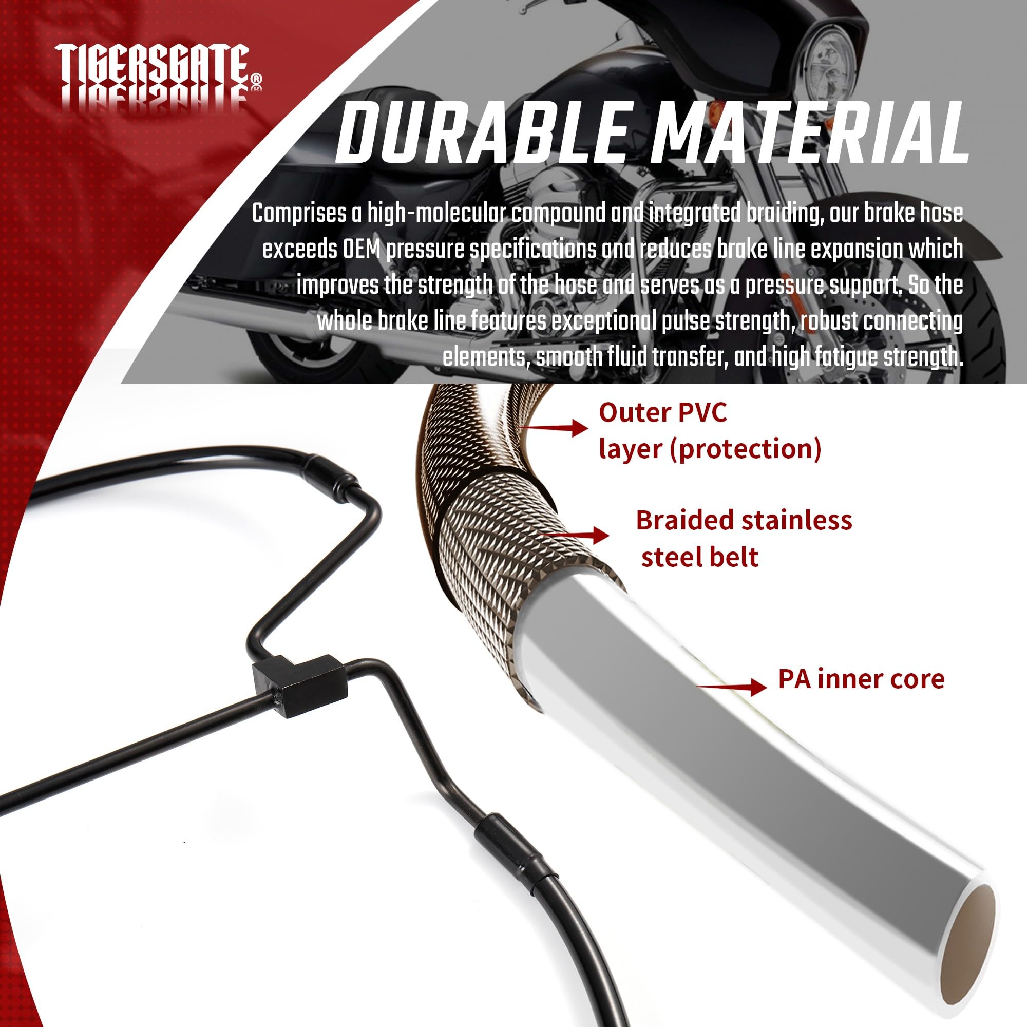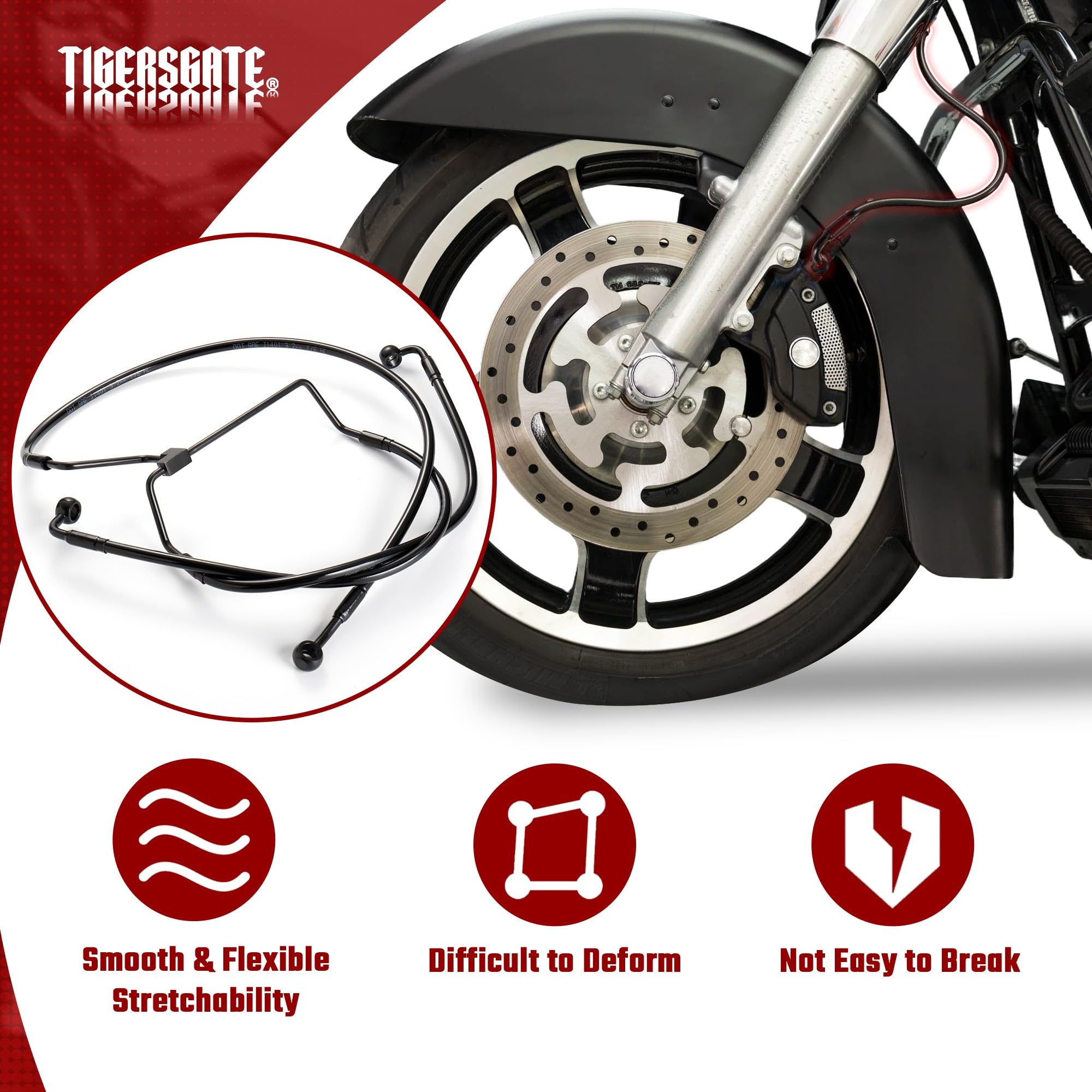 TIGERSGATE +2″ Touring Línea de Freno Hidráulico Delantero