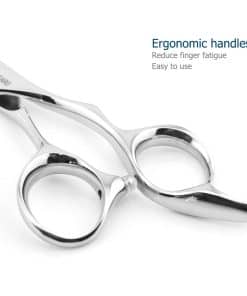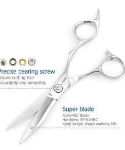 Esta tijeras de pelo 440C de 5.5 pulgadas es una herramienta profesional de alta calidad para cortar cabello de forma precisa y eficiente. Con hojas convexas muy afiladas que mantienen su agudeza a lo largo de su vida útil, esta tijeras proporciona un equilibrio excepcional para cortes precisos. Diseñadas ergonómicamente con mangos japoneses para reducir la fatiga durante el uso prolongado, estas tijeras son ideales para uso en barberías, salones de belleza, o incluso en casa. La marca KINSARO se especializa en diseñar, producir y vender tijeras de pelo profesionales de alto rendimiento, y todas sus tijeras tienen una dureza superior a 58HRC, cumpliendo con los estándares de calidad de nivel profesional. ¡Hazte con tus tijeras KINSARO ahora y experimenta cortes de pelo de calidad profesional en todos tus clientes!