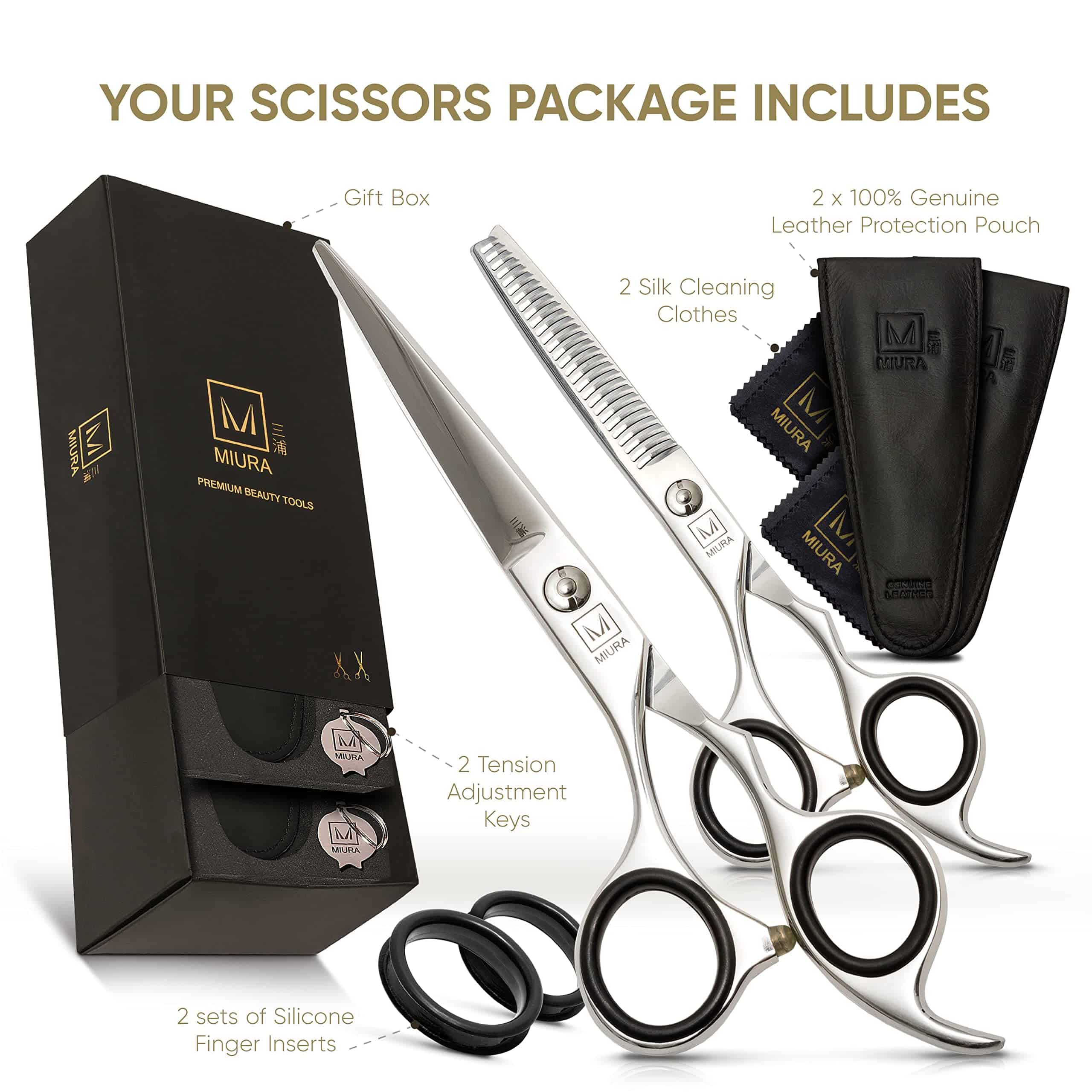 4. Set Completo: Actualiza tu juego de peinado con el kit premium de cabello de Miura que incluye tanto tijeras para cortar como para entresacar. Crea una variedad de estilos que te harán sentir tu mejor versión.
