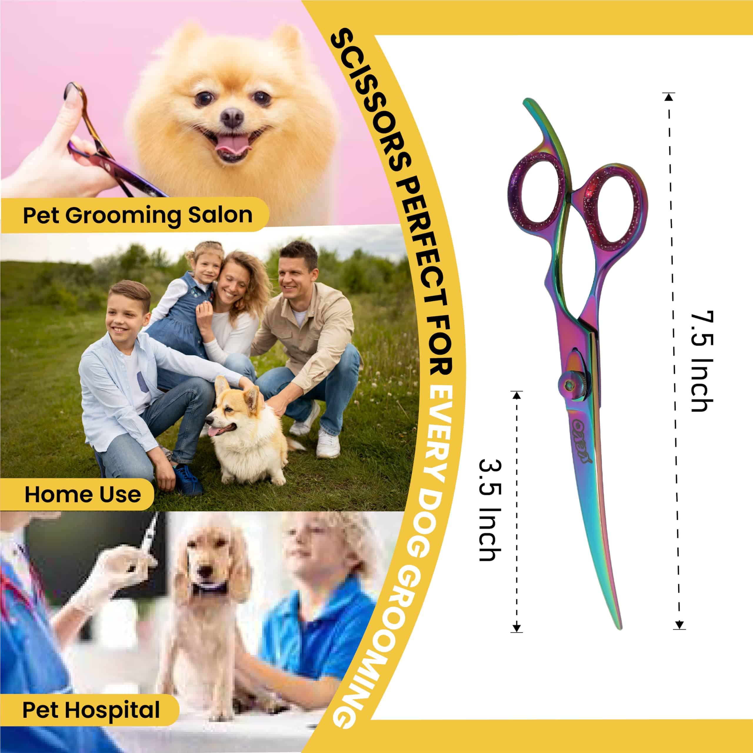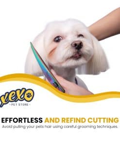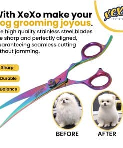 ¿Estás cansado de luchar con el pelaje rebelde al peinar a tu mascota amada ¡Saluda a la herramienta de aseo definitiva – nuestras tijeras de peluquería curvadas Premium de 7,5 pulgadas para perros y mascotas! Diseñada pensando tanto en ti como en tu amigo peludo, esta tijera es la clave para lograr resultados de calidad profesional en casa. Precisión a tu alcance: Confeccionadas con acero inoxidable de alta calidad, las afiladas cuchillas de nuestra tijera mantienen su filo con el tiempo, garantizando cortes precisos cada vez que la uses. Ya sea que tengas una mascota de pelo largo o corto, esta tijera puede manejarlo todo, haciéndola adecuada para todas las razas y tipos de pelaje. Diseño amigable para mascotas: La forma de la cuchilla curva asegura que puedas cortar el pelo sin el riesgo de cortes o cortaduras accidentales, mientras que la punta redondeada añade una capa adicional de seguridad. Tu amigo peludo apreciará la suavidad de esta tijera de aseo. Herramienta de aseo versátil: Nuestra tijera curvada de 7,5 pulgadas es increíblemente versátil, convirtiéndola en una adición esencial a tu kit de aseo para mascotas. Úsala para dar forma, recortar y mezclar el pelaje, así como para crear looks elegantes y personalizados. Logra esa apariencia «recién salida del peluquero» sin salir de casa. Características clave: Cuchilla curva de 7,5 pulgadas para un aseo preciso Mango ergonómico para comodidad y control Hecho de acero inoxidable duradero Punta de seguridad redondeada para prevenir accidentes Adecuado para todas las razas y tipos de pelaje Logra resultados profesionales en casa Regalo perfecto para amantes de mascotas: ¿Buscas un regalo considerado para el amante de mascotas en tu vida Nuestra Tijera de Aseo Curvada Premium de 7,5 pulgadas es una excelente elección. Ayúdalos a mantener a su compañero peludo luciendo lo mejor posible y hacer que el aseo sea pan comido.