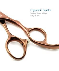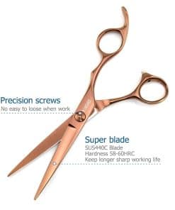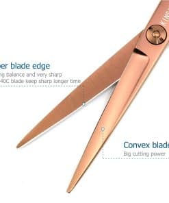 5. Características: Hojas cóncavas 440C, muy afiladas, mantienen su nitidez durante toda la larga vida útil. Línea de borde bien proporcionada y camino deslizante, equilibrio de corte muy bueno. Diseño japonés ergonómico de los mangos, reduce la fatiga en el uso prolongado. El cuerpo de la hoja de las tijeras está forjado, y la resistencia es mejor que la del cuerpo de las tijeras de corte láser.