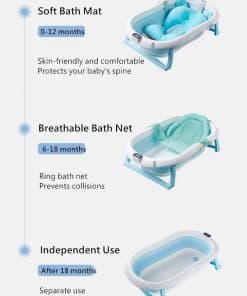 La tina de baño plegable para bebé es un accesorio esencial para el cuidado del bebé durante el baño. Está fabricada con materiales de alta calidad, como PP y TPE, que garantizan resistencia y durabilidad. La combinación de la tina de baño con la suave alfombrilla proporciona una experiencia de baño cómoda y segura para el bebé. La tina cuenta con un sensor de temperatura visible, que permite a los padres controlar y ajustar la temperatura del agua de manera precisa para evitar quemaduras o resfriamientos. Además, su diseño plegable facilita su almacenamiento y transporte, siendo ideal para su uso en casa o cuando se viaja con el bebé. Con un tamaño adecuado y recomendado para recién nacidos de hasta 36 meses, esta tina de baño es una excelente opción para garantizar la higiene y comodidad del bebé durante el baño.