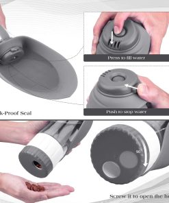 La nueva botella de agua para mascotas de TIOVERY está diseñada con 2 capas para agua y comida. ¡Tus mascotas pueden disfrutar de agua y comida en cualquier momento y lugar! La botella de agua para perros portátil está hecha de plástico Tritan de alta calidad y silicona de grado alimenticio. ¡Libre de BPA, plomo, segura y duradera! A prueba de fugas y fácil de usar. Además, sin desperdicio de agua y fácil de limpiar. ¡Siempre estamos comprometidos en crear los mejores productos seguros para nuestras mascotas!