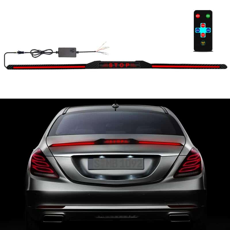 1. Logotipo funcional El estilo de logotipo de esta luz de spoiler LED para automóvil es «STOP». Además de lograr funcionalidad, el logotipo combinado con una variedad de modos de luz mejora en gran medida la estética y la moda de su automóvil.