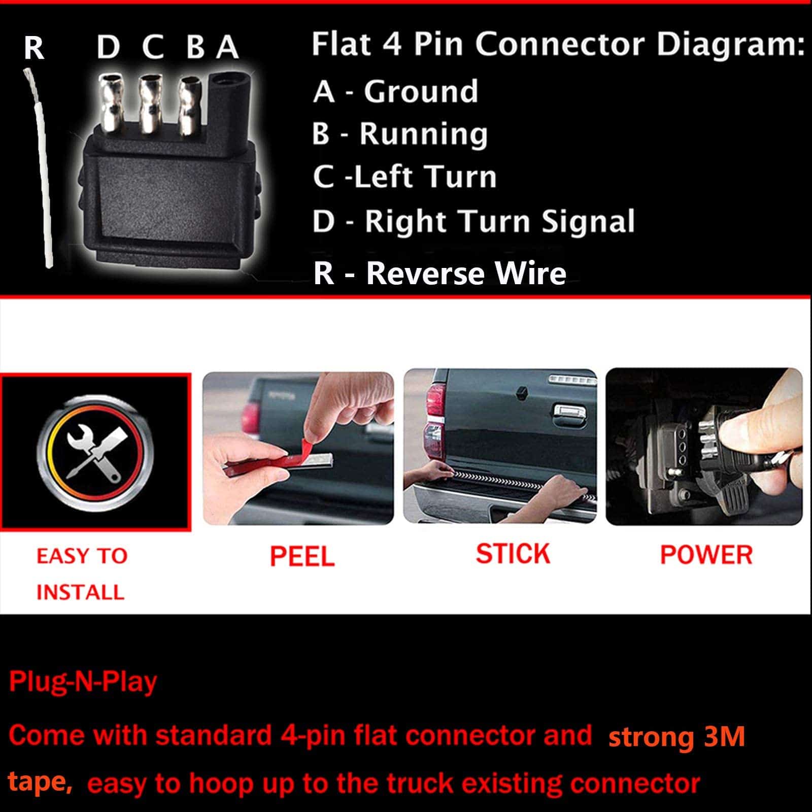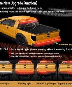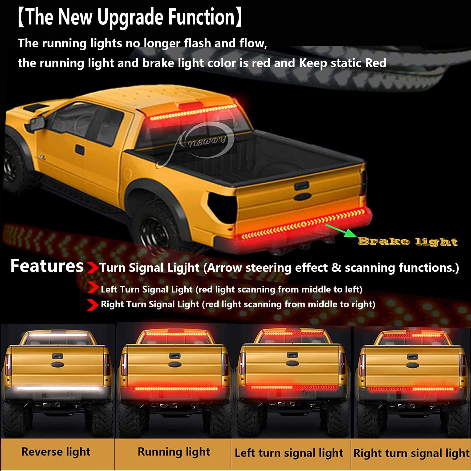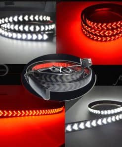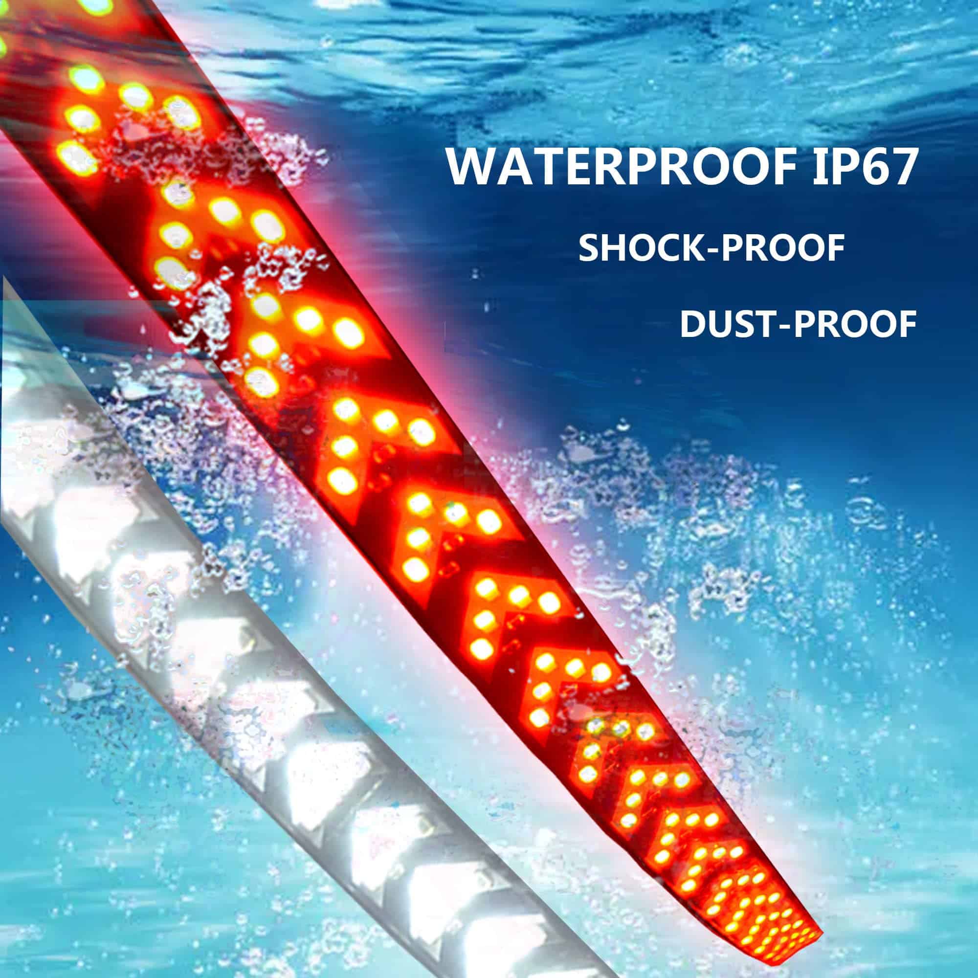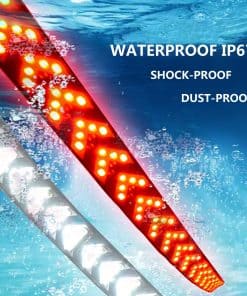 Tira de luz para portón trasero de 49″ – LED de cinco filas y resistente al agua IP67 – Esta tira de luz para portón trasero de 49 pulgadas es universalmente compatible con la mayoría de camiones, remolques, SUV, RV, VAN, etc. ¡Conduce de manera más segura con esta potente luz de portón LED! Puedes montarlas a lo largo del portón como luces de señal de giro izquierda / derecha, luz de freno, luz de marcha y luz estroboscópica de emergencia. Especificación: Número de artículo: 49» Rojo y Blanco Escaneo de luces Tamaño: 60 pulgadas (152 cm) Cantidad de LED: 360 piezas de LED rojos y 108 piezas de LED blancos Tipo de LED: SMD3528 LM/LED: 6-8LM por LED Cable de plomo: 1 metro con conector de juego Carcasa: PVC Advertencia: Se recomienda que la instalación de este kit sea realizada por un profesional con licencia. La instalación incorrecta de este kit anulará todas las garantías.