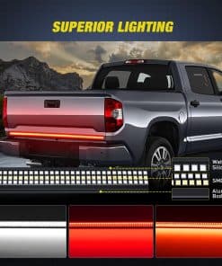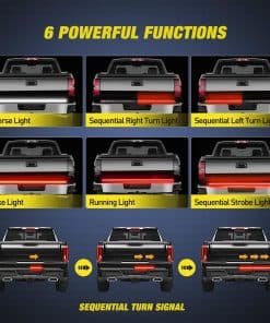 1. Súper brillante marco de aluminio: La tira de luz para portón trasero de 60 pulgadas tiene chips de LED de triple fila, cada fila con 400 LED super brillantes, un total de 1200 LED SMD 2835 con alta calidad, salida eficiente y lúmenes que pueden iluminar fácilmente su camino de viaje, asegurando su seguridad de día y de noche. 2. 6 funciones completas: La tira de luz para portón trasero de triple fila emite luz roja oscura de funcionamiento, luz de freno roja brillante, luz de reversa blanca, señales de giro rojas secuenciales, luz estroboscópica secuencial. 200-300% más brillante que la generación anterior y la mayoría de las tiras de luz en el mercado. 3. Impermeable y duradera: A diferencia de la tira de luz de PVC, esta tira de luz para portón trasero con marco de aluminio adopta la tecnología impermeable de epoxi IP65, que tiene las características de resistencia al agua, resistencia a la corrosión química y cristal claro, resistente a cualquier clima y ambiente severo. Dura más con una vida útil de más de 50,000 horas. 4. Instalación fácil y rápida: No es necesario perforar, solo pelar y pegar, conector plano de 4 pines estándar plug and play. Viene con un cable de conector plano de 4 vías, también puede conectarlo de forma permanente y utilizar los soportes adicionales y tornillos para una mayor seguridad, sin preocupaciones de caídas. 5. Ampliamente aplicable: Esta tira de luz para portón trasero tiene 60 pulgadas de largo y es adecuada para la mayoría de las camionetas, remolques, camiones, vehículos de remolque, autos, SUV, RV, Van, etc. NOTA: Si hay una advertencia al conectarlo al puerto del remolque, por favor, conecte el cableado de luz del automóvil siguiendo la secuencia de línea. Garantía de 12 meses otorgada por Nilight