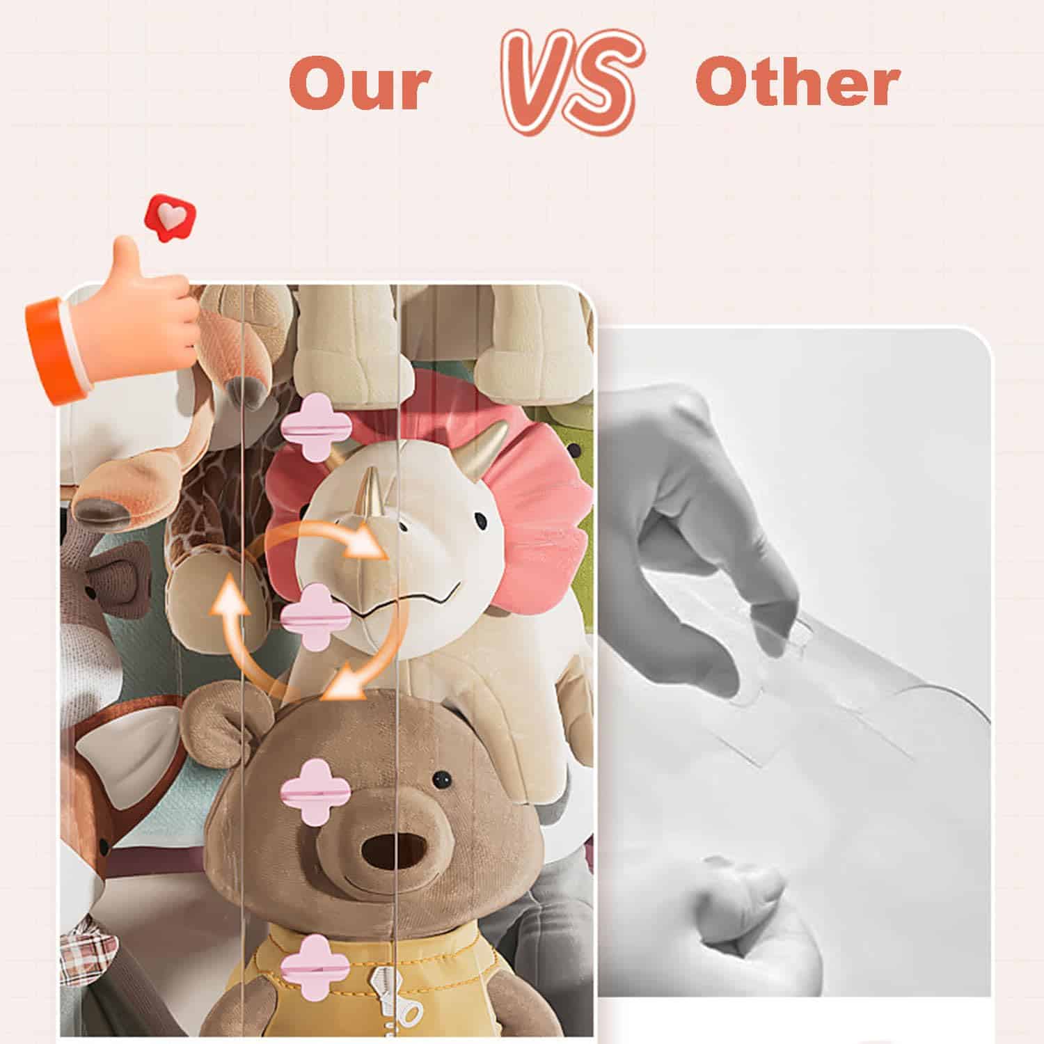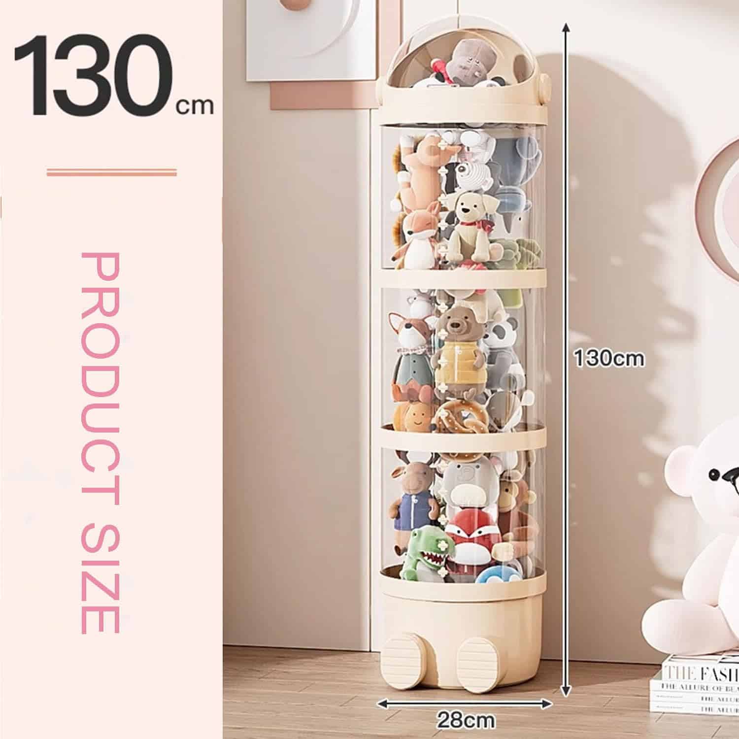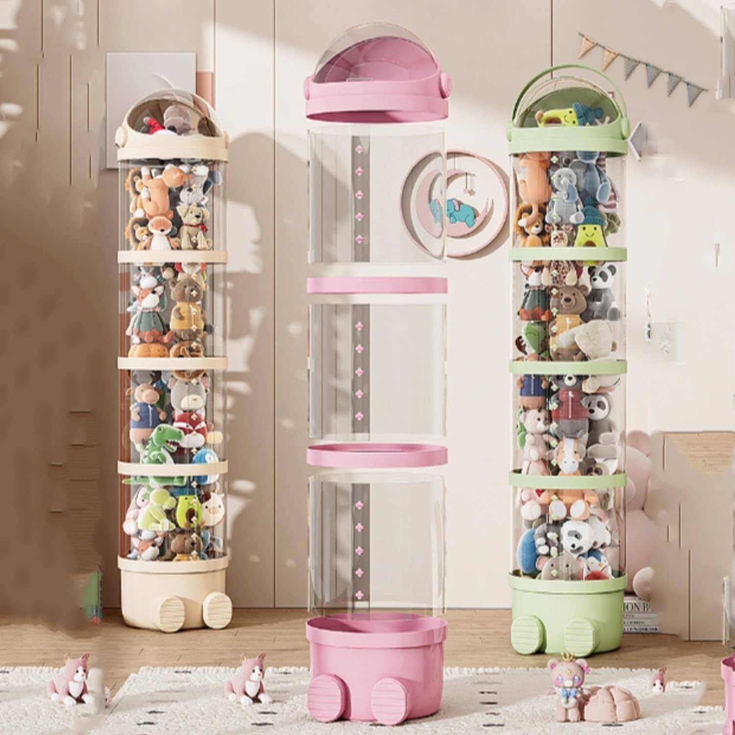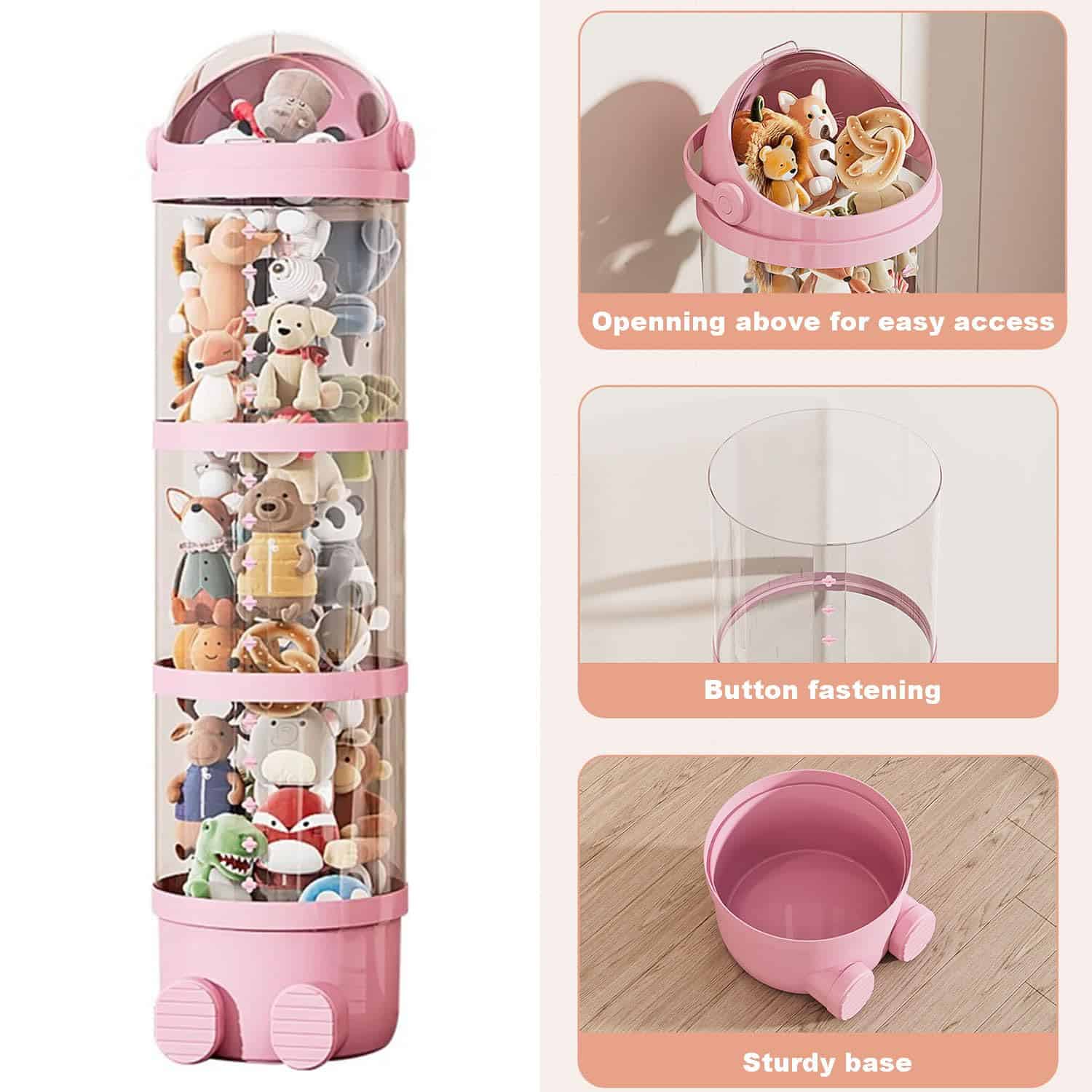 El organizador de almacenamiento de peluches es cilíndrico y se coloca verticalmente en el suelo. Ahorra tu espacio. Este tubo de juguete de peluche es fácil de armar sin taladrar agujeros o dañar paredes. Puedes colocarlo donde quieras.