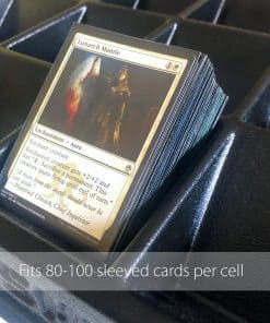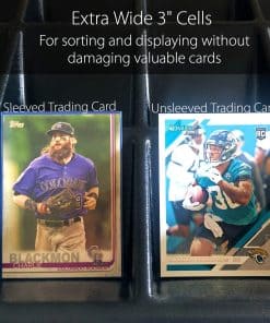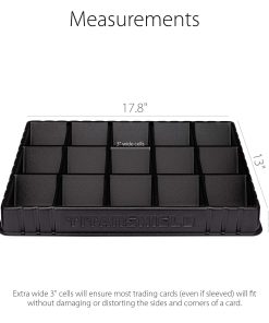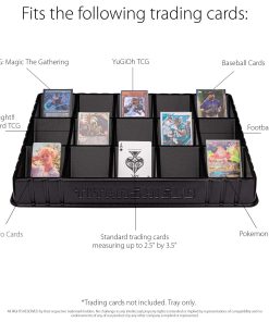10 bandejas de clasificación para distribuidores de cartas en estuche negro, fabricadas con un polímero plástico de alta resistencia para durabilidad. Ideal para ordenar y organizar cartas coleccionables, perfecto para revendedores y minoristas. Las bandejas son apilables para un almacenamiento conveniente. Cada celda de la bandeja puede sostener hasta 100 cartas, y las dimensiones internas garantizan que incluso las cartas con fundas se coloquen planas sin doblarse. Incluye un total de 15 celdas distribuidas en 3 filas por 5 columnas, con un total de 10 bandejas de clasificación.