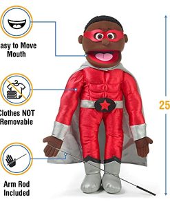 Nuestros nuevos títeres de cuerpo completo de calidad de actuación en estilo ventrílocuo ofrecen una boca increíblemente fácil de mover. También vienen con una varilla de control de brazo de metal. Para aquellos que no tienen idea de lo que esto significa (¡no se preocupen, muchas personas preguntan!), la varilla es una delgada «varita» de metal que simplemente se sujeta a cualquiera de las manos para el movimiento. Así es como se operan los títeres de tipo Muppet y Sesame Street. Simplemente inserta tu mano en la ranura en la parte posterior del títere para operar la boca. Al abrir y cerrar tu mano, la boca del títere se moverá.