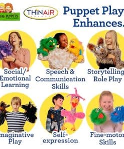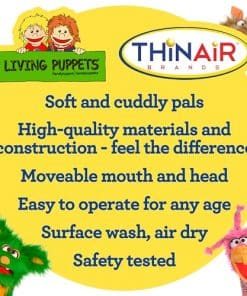 Presentando nuestros maravillosos títeres finamente hechos a mano, diseñados en Alemania y fabricados con el mayor cuidado utilizando los mejores materiales. Conoce a Murray, el amigable títere de mano de león. Murray mide 17 pulgadas de alto y tiene una melena hermosa y una cara amable. Se siente muy suave y mimoso. Murray mide 17 x 10 x 6 pulgadas. Estos son los originales Living Puppets, apreciados por generaciones y incomparables por imitaciones. Nuestros títeres de mano ofrecen una multitud de beneficios para el desarrollo de los niños. Fomentan el aprendizaje social y emocional, mejoran las habilidades de habla y comunicación, alimentan las aventuras de contar historias y jugar a roles, fomentan el juego imaginativo, fomentan la autoexpresión y ayudan en el desarrollo de habilidades motrices finas. Lo que distingue a nuestros títeres es su suavidad y mimosidad excepcionales. No escatimamos gastos en el uso de materiales de primera categoría y técnicas de construcción, asegurando que cada títere sea un deleite al tocar y sostener. Con bocas y cabezas móviles, son fáciles de operar para todas las edades. Puedes estar seguro de que nuestros títeres cumplen y superan las normas de seguridad, cumpliendo con las regulaciones de EE. UU. y Canadá. Presentado por Thin Air Brands, una empresa líder en juguetes con sede en Colorado, EE. UU.