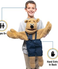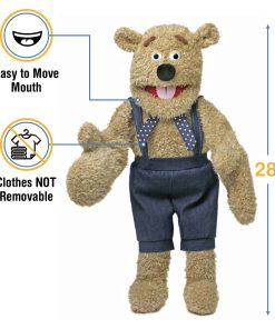 El Oso Tontito está hecho de pelaje de oso de peluche de alta calidad que es muy suave y peludo. Este títere es genial para abrazar. ¡Lo mejor de todo es que no solo es un adorable osito de peluche, también es un títere estilo ventriloquista con boca grande completamente funcional! Su boca, así como sus brazos y manos, son completamente movibles. Viene vestido como se muestra, luciendo overoles de mezclilla y pañuelo de lunares. La ropa en este títere no es removible, pero puedes ponerle ropa de niño talla 2T sobre su atuendo existente.