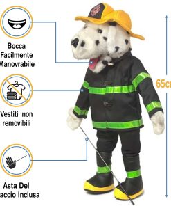 El títere viene completamente vestido como se muestra (la ropa puede variar ligeramente debido a la disponibilidad de la tela). Este títere es perfecto para enseñar prevención de incendios.