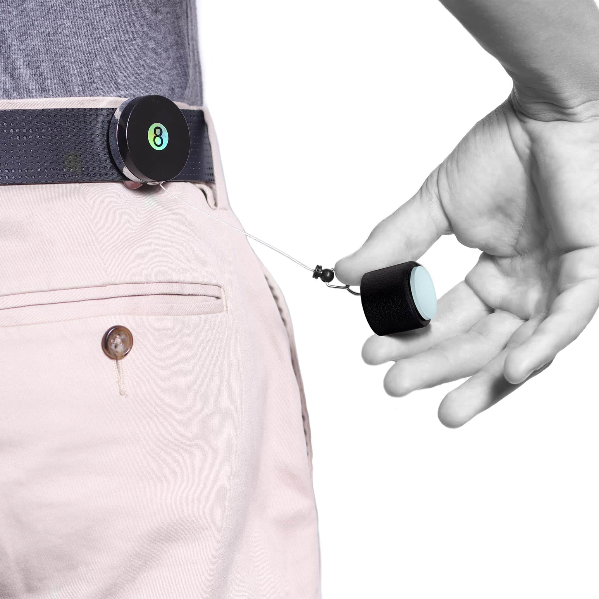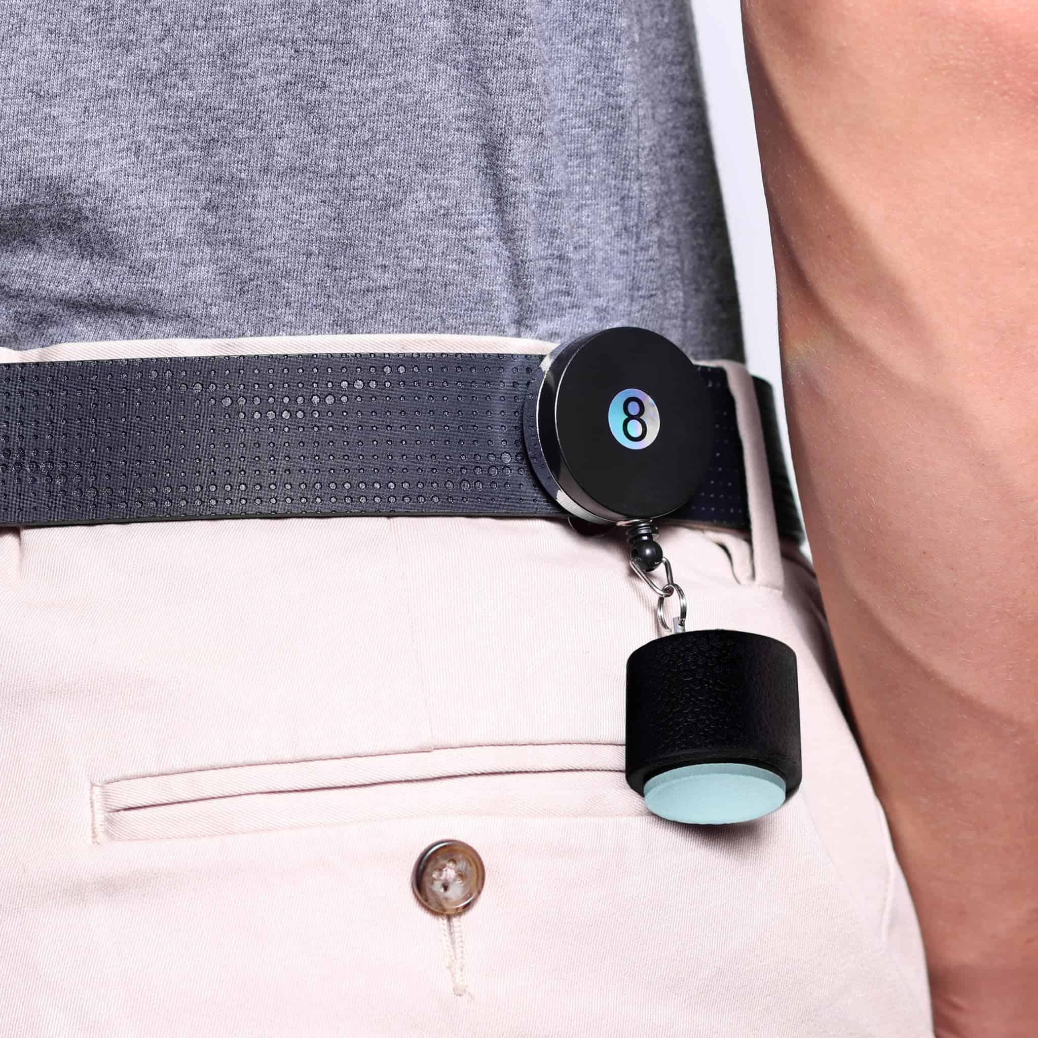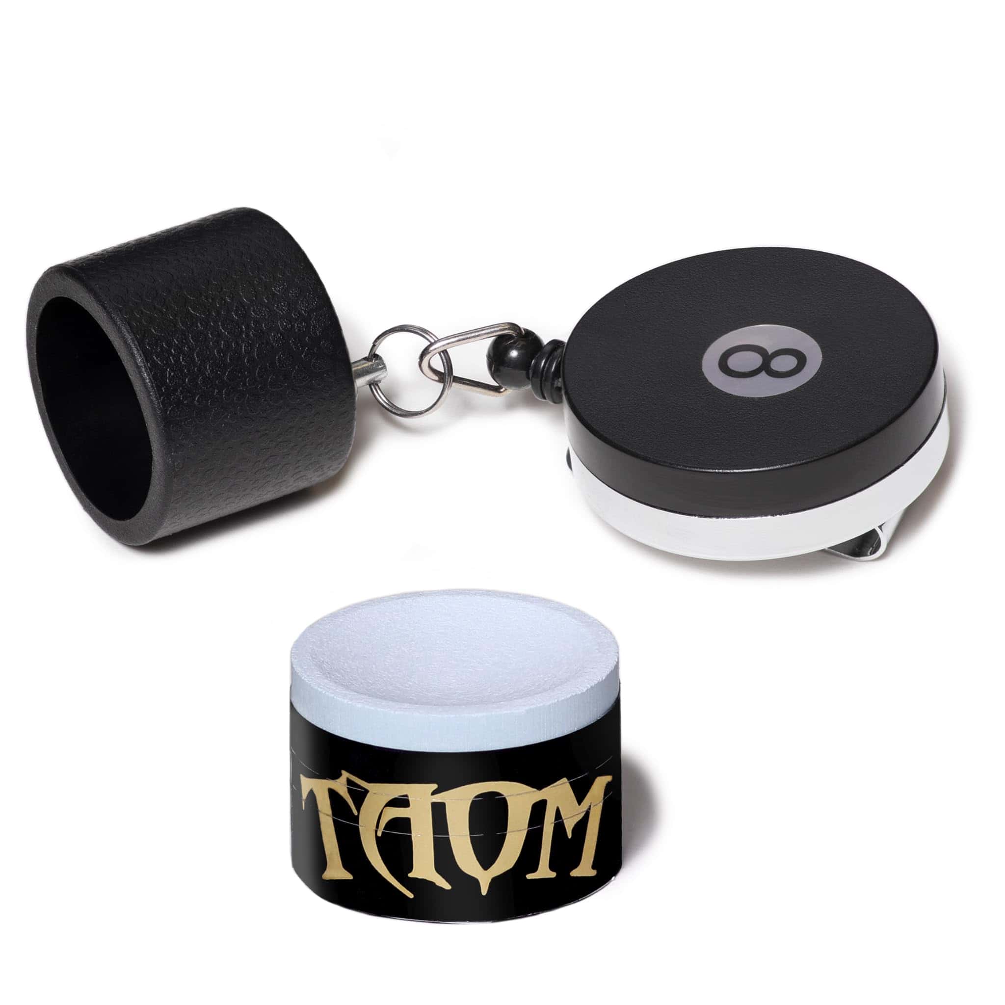 TAOM: Futuro. Innovación. Revolución. Taom está cambiando la cara del billar y el pool al cambiar la base misma en la que los jugadores confían: la tiza. No más mala contacto. No más patadas. Solo tiza limpia, duradera y confiable. Especificaciones del Producto: Versión: 2.0. Forma de la tiza: Redonda. Altura de la tiza: ~0.7 (~17 mm). Diámetro de la tiza: 1 (25.4 mm). Peso neto: ~0.6 oz (~18 gr). Color de la tiza: Azul Claro. Empaque: Bolsa de plástico. Hecho en Finlandia. El Chalker de 8-Ball retráctil se engancha a tu cinturón o bolsillo y proporciona acceso rápido y fácil a tu tiza durante el juego. Diseñado específicamente para sostener tizas redondas Taom. Material del cordón: Nylon. Longitud del cordón: 26 (66 cm). Material del disco: Metal, plástico. Diámetro del disco: 1 (3.8 cm). Material del estuche de tiza: Goma. Peso neto: 1.3 oz (37 gr). Color del soporte de tiza: Negro.