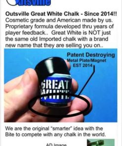 ¡Dale un mordisco a la competencia! Great White es consistentemente clasificado como la tiza número uno en el mercado. Fabricado por Outsville en Knoxville, Tennessee y no solo hecho PARA nosotros como tantas tizas importadas chinas con marcas estadounidenses, Great White es solo una de las 2 Tizas de Grado Cosmético en el mercado y se ofrece a un precio que no romperá tu cuenta bancaria. Cada pieza de Great White incluye un imán de neodimio ultralimpio en la parte inferior de la tiza para que tengas opciones sobre cómo quieres mantenerlo. Este listado es para un Kit de Inicio de Great White en el color Azul Mako. El kit incluye todo lo que se muestra. 1 Pieza de tiza Great White, 1 Clip de Cinturón Magnético y 1 Tapa de Polvo.