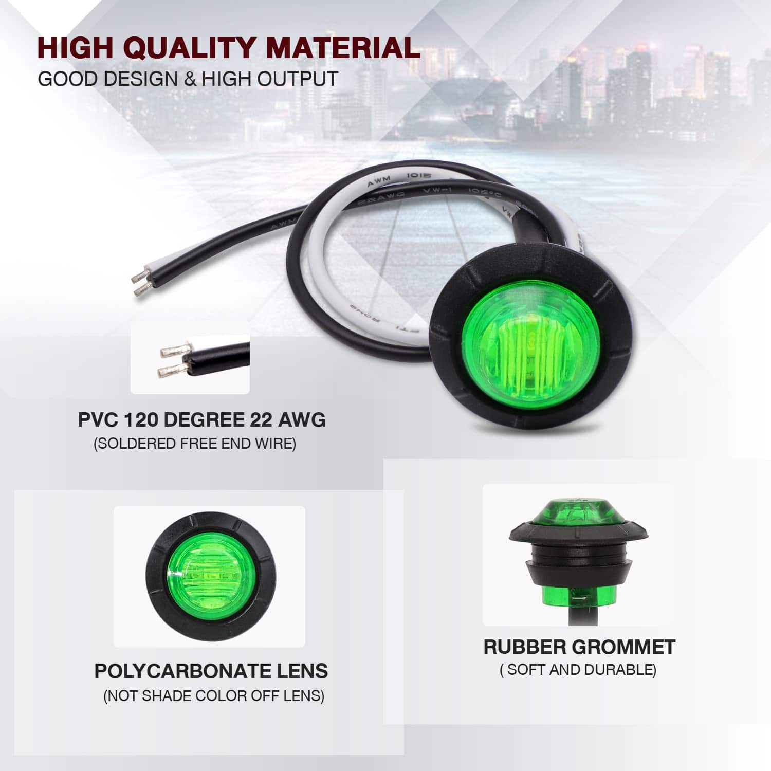 TMH 100 Pcs 3/4 Pulgadas Luz Mini Marcador Lateral Verde LED 3 Diodos