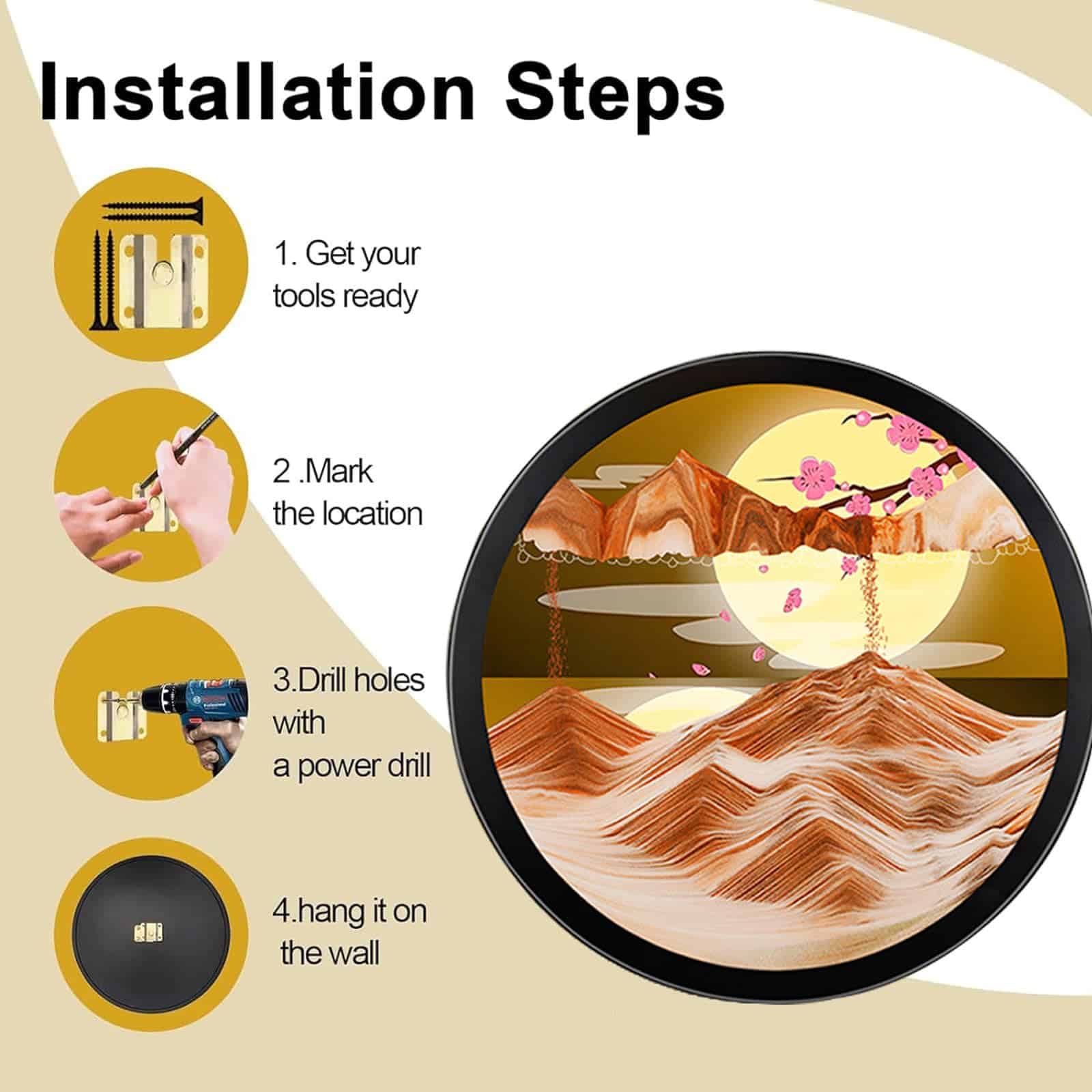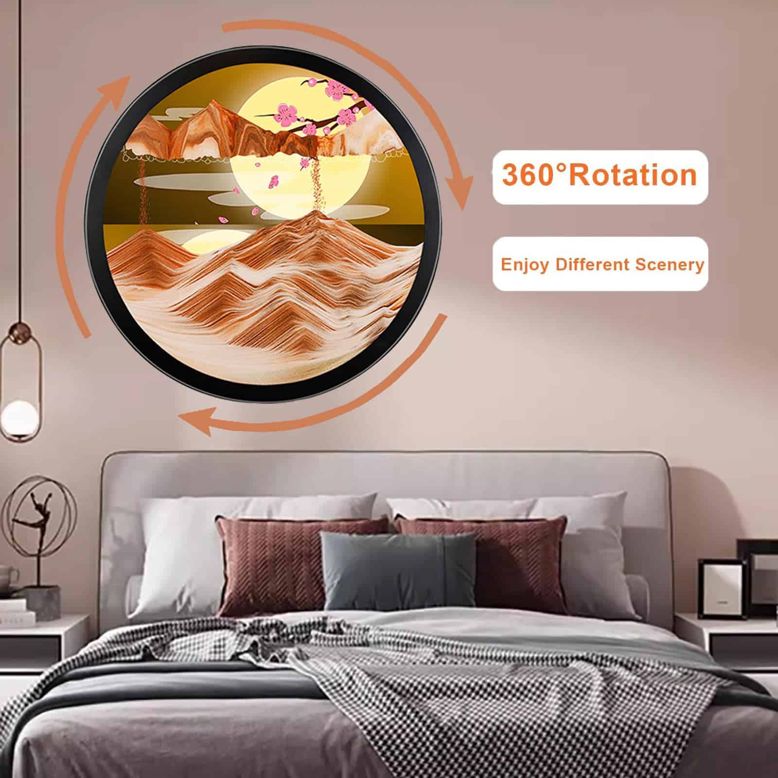 Pintura de arena giratoria 360�, miles de cambios. Cada vez que giras la Pintura de Arena Dinámica, obtienes una imagen diferente, Ver cómo la arena forma una imagen diferente gota a gota hace que todos se sientan muy relajados y aliviados. Puede aliviar el estrés, relajar los ojos y cultivar la paciencia.