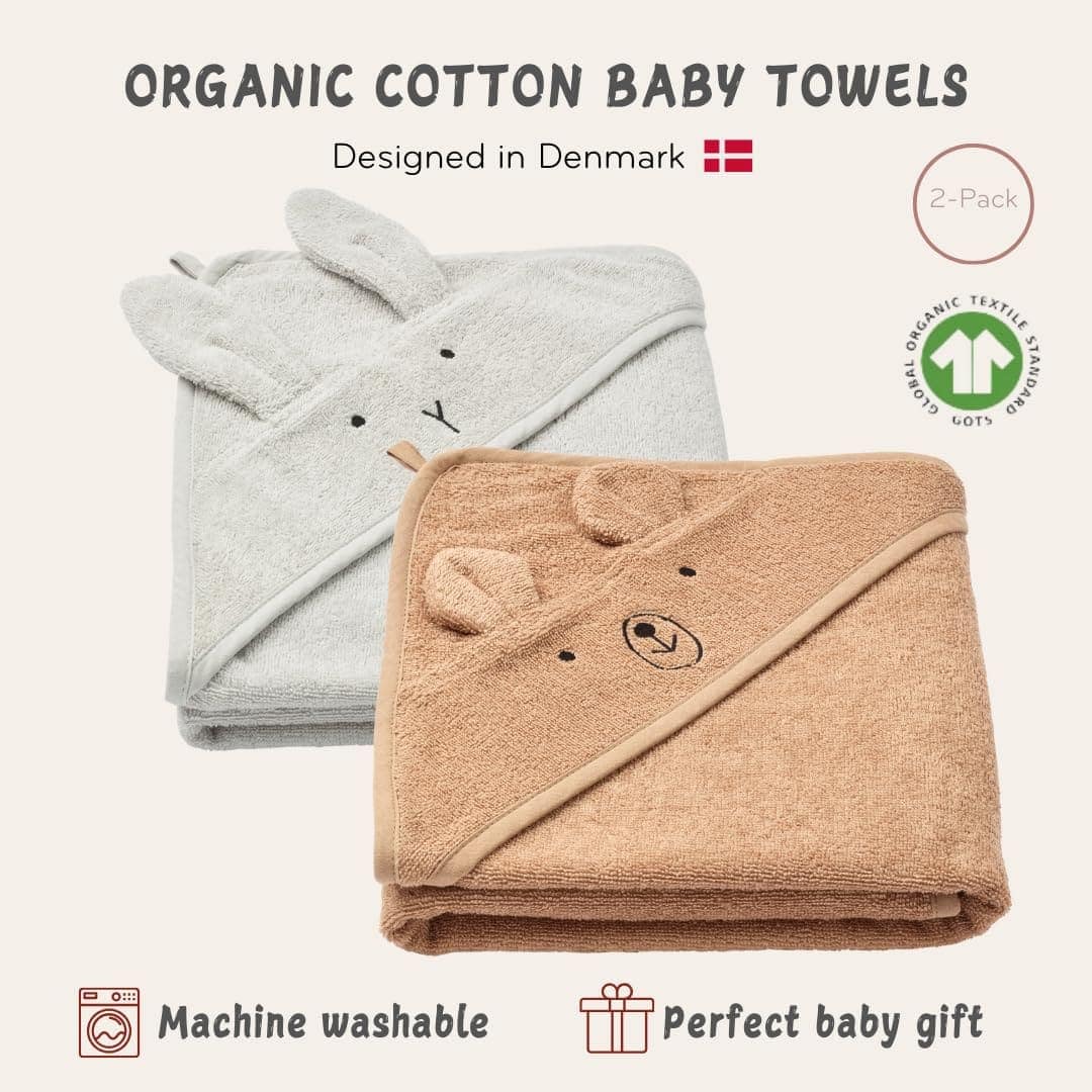 Toalla con Capucha para Bebé – Toallas de -Gris Conejo/Natur