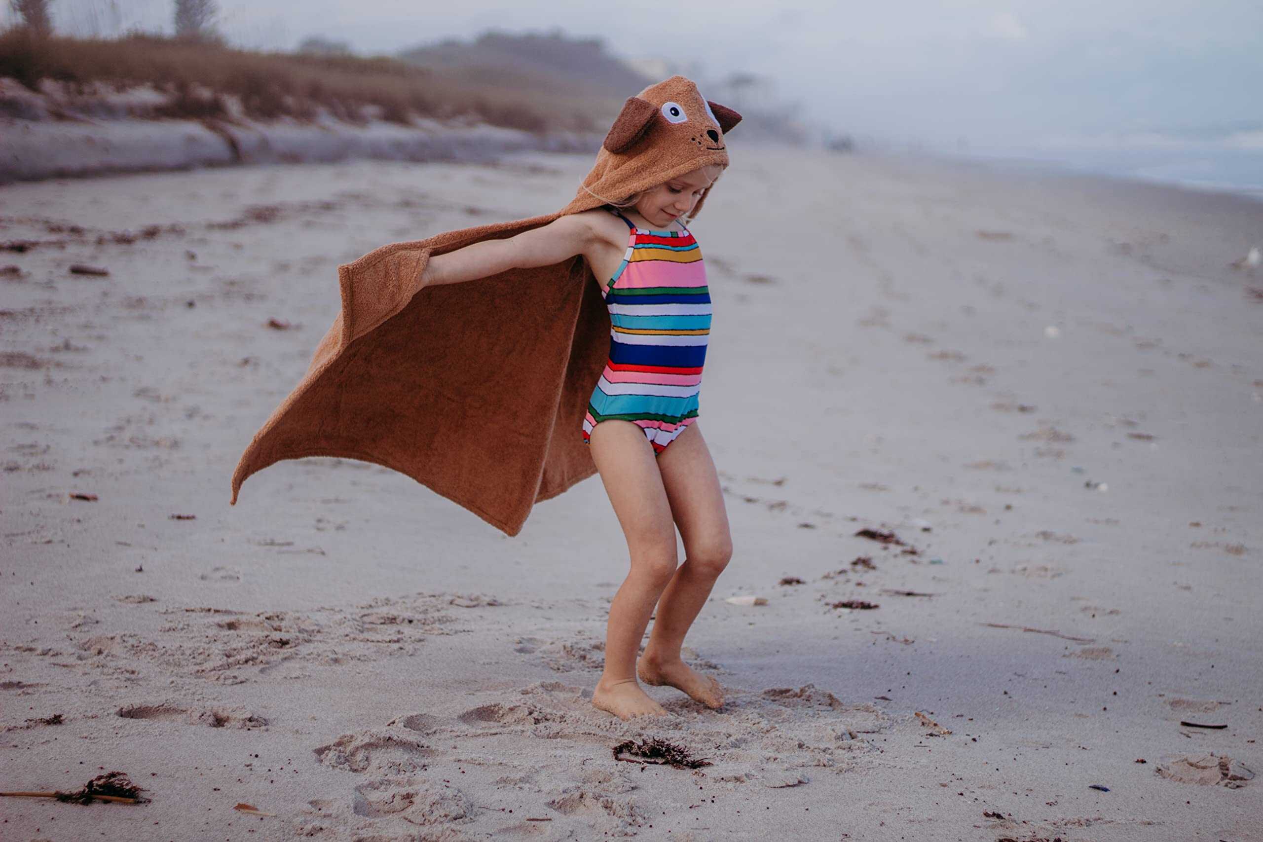 Mantén a tu bebé caliente después de nadar con esta toalla con capucha de perrito. Nuestras lindas toallas para bebés de Yikes Twins secan a tu niño fácilmente mientras lucen adorables en tu bebé. Hechas de algodón terry 100%, la tela transpirable es increíblemente suave y liviana. El algodón es naturalmente hipoalergénico y mantiene la piel de tu bebé libre de irritaciones. Además de ser lindos, los perros son extremadamente leales e inteligentes. Deja que tu hijo se entregue a la pretensión de ser un perrito mientras usa esta toalla con capucha. Las orejas caídas, los ojos apliques, las pecas y la nariz con forma de corazón se combinan para crear una toalla linda que tu niño nunca querrá quitarse después del baño. El tamaño generoso de 50 x 27 pulgadas significa que tu hijo puede disfrutar de esta toalla por años. La construcción liviana hace que esta toalla con capucha para bebés sea fácil de llevar en tu bolsa cuando vayas a la playa o la piscina. Regala esta toalla de baño con capucha como regalo de baby shower o como un presente de cumpleaños divertido y útil para un niño pequeño.