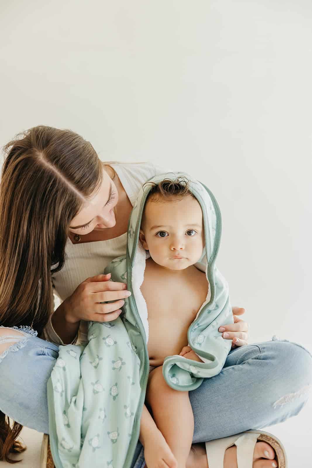 1. TEJIDO DE PUNTO/ALGODÓN TERRY: Las toallas con capucha de Copper Pearl cuentan con un exterior de algodón de punto premium que se suaviza con cada lavado, combinado con un forro de felpa de algodón terry para una absorción y comodidad máximas. Toallas suaves y perfectas para recién nacidos y niños mayores!