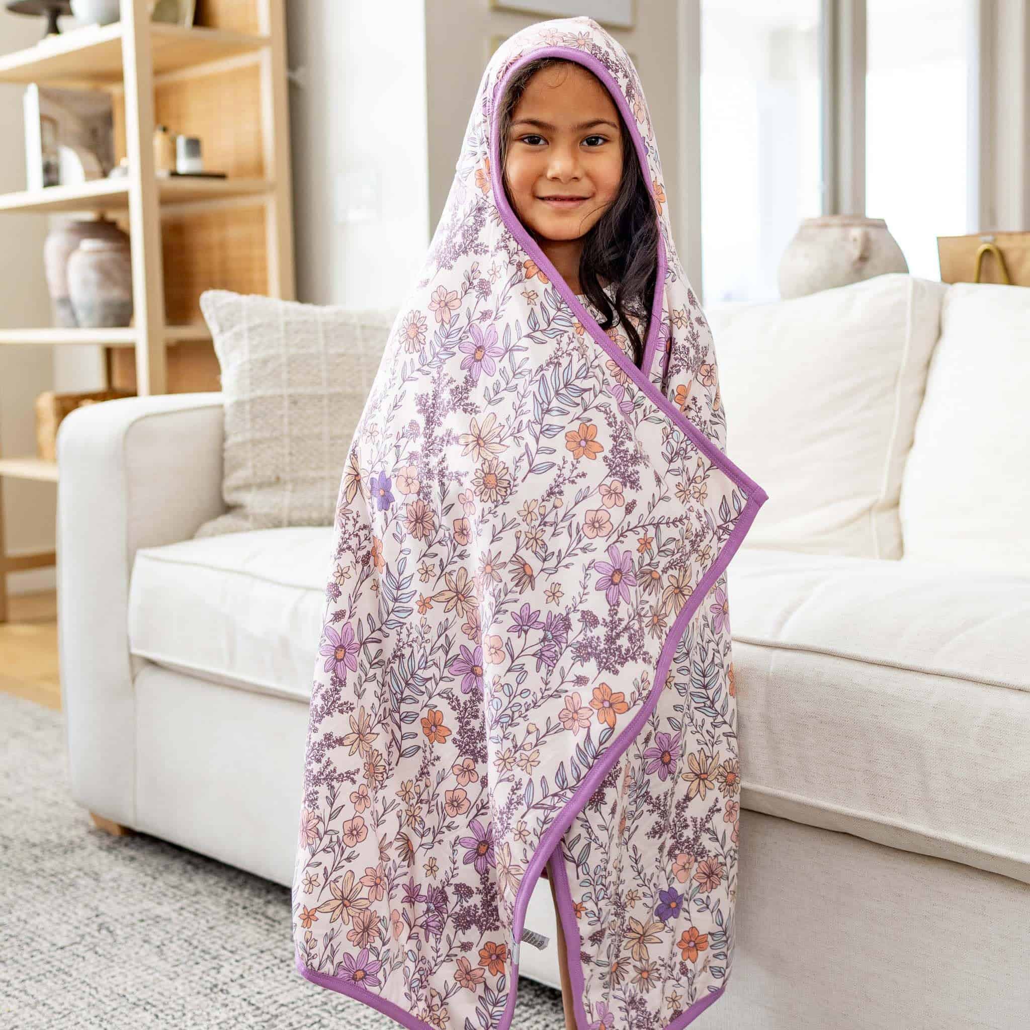 Toalla con capucha premium para niños grandes -Flora