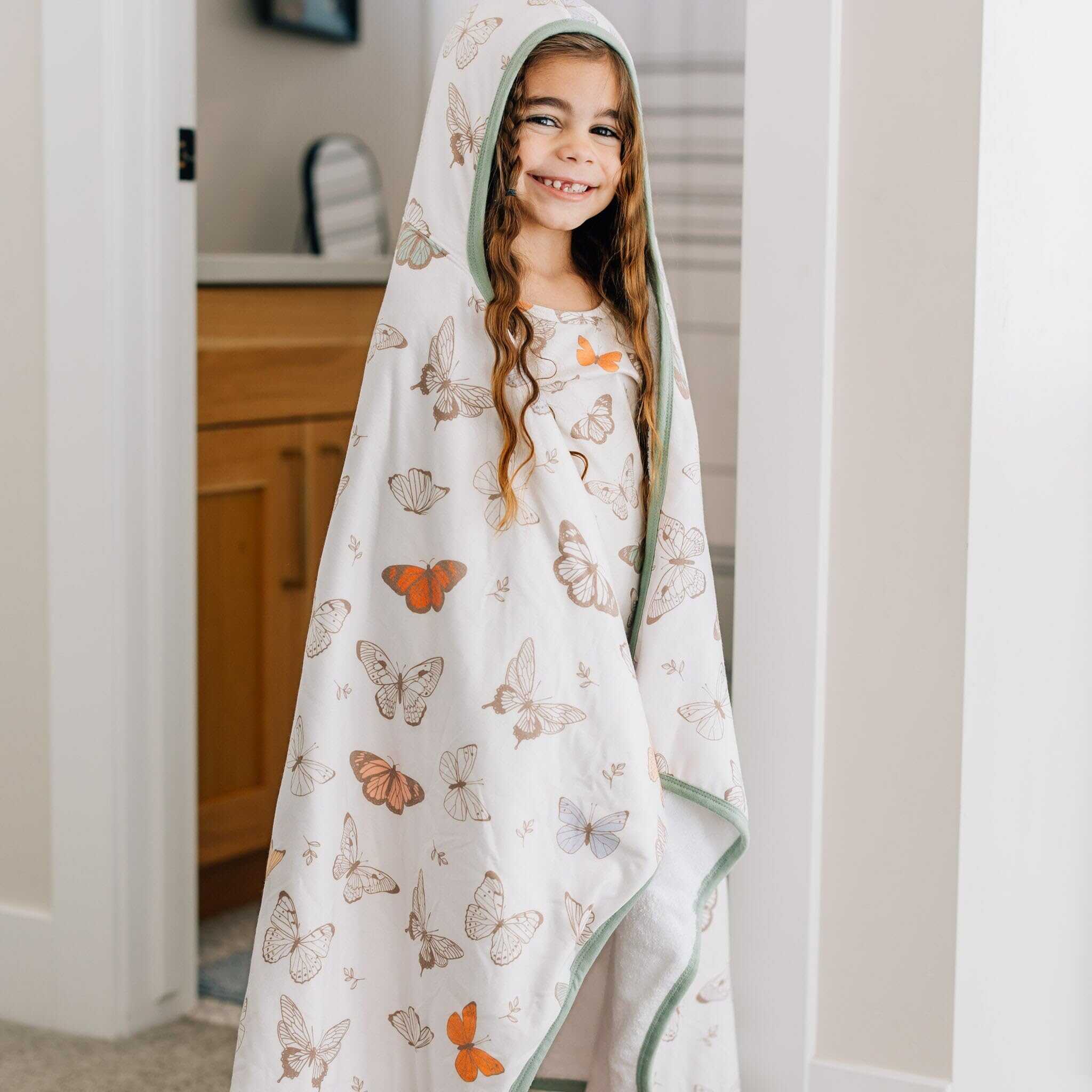 ¡Tiempo de baño feliz solo para niños grandes! Agrandamos nuestra firma de toalla de baño con capucha para brindar acogedor absorbente a niños de 4 años en adelante. Hecho de algodón de punto premium y forrado con tela de rizo, se suaviza con cada lavado y cuenta con una capucha y bolsillos para mayor comodidad y conveniencia.